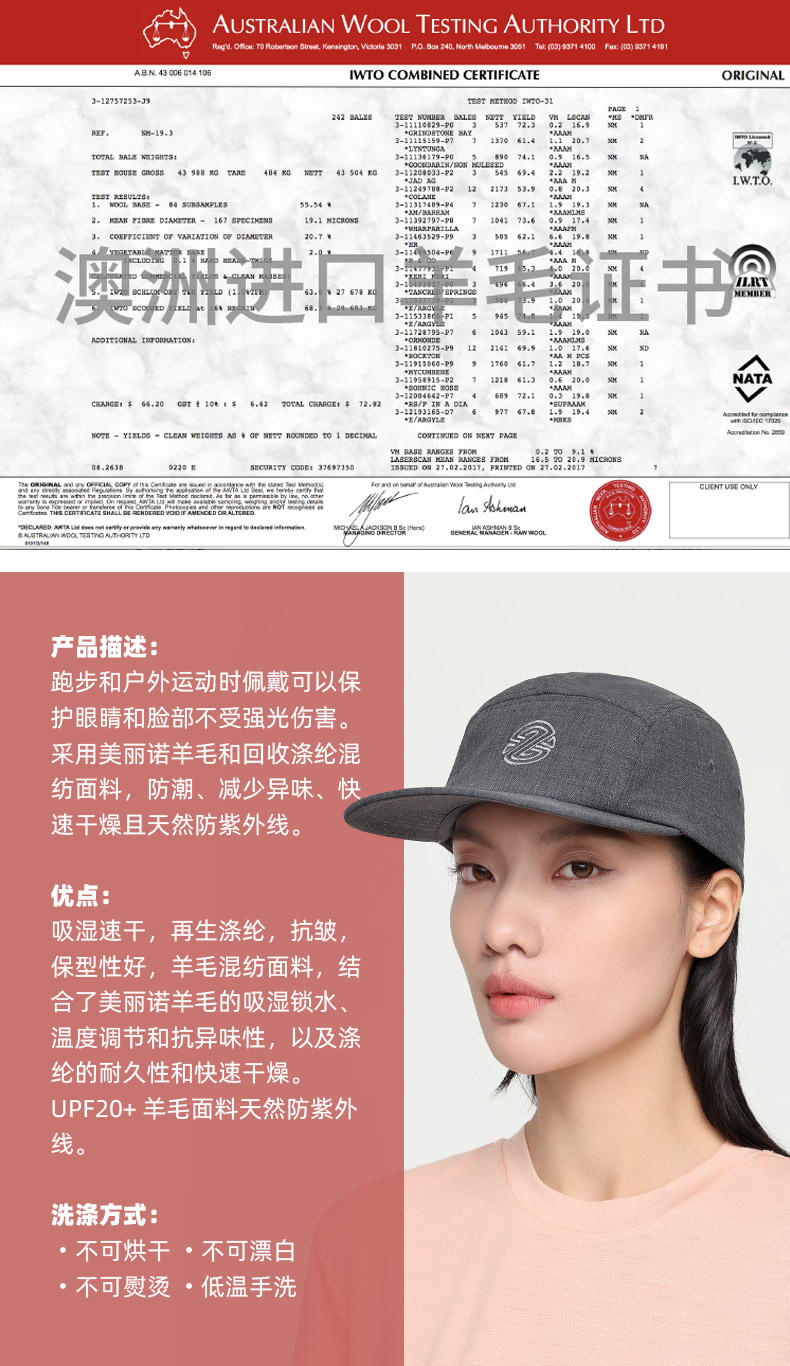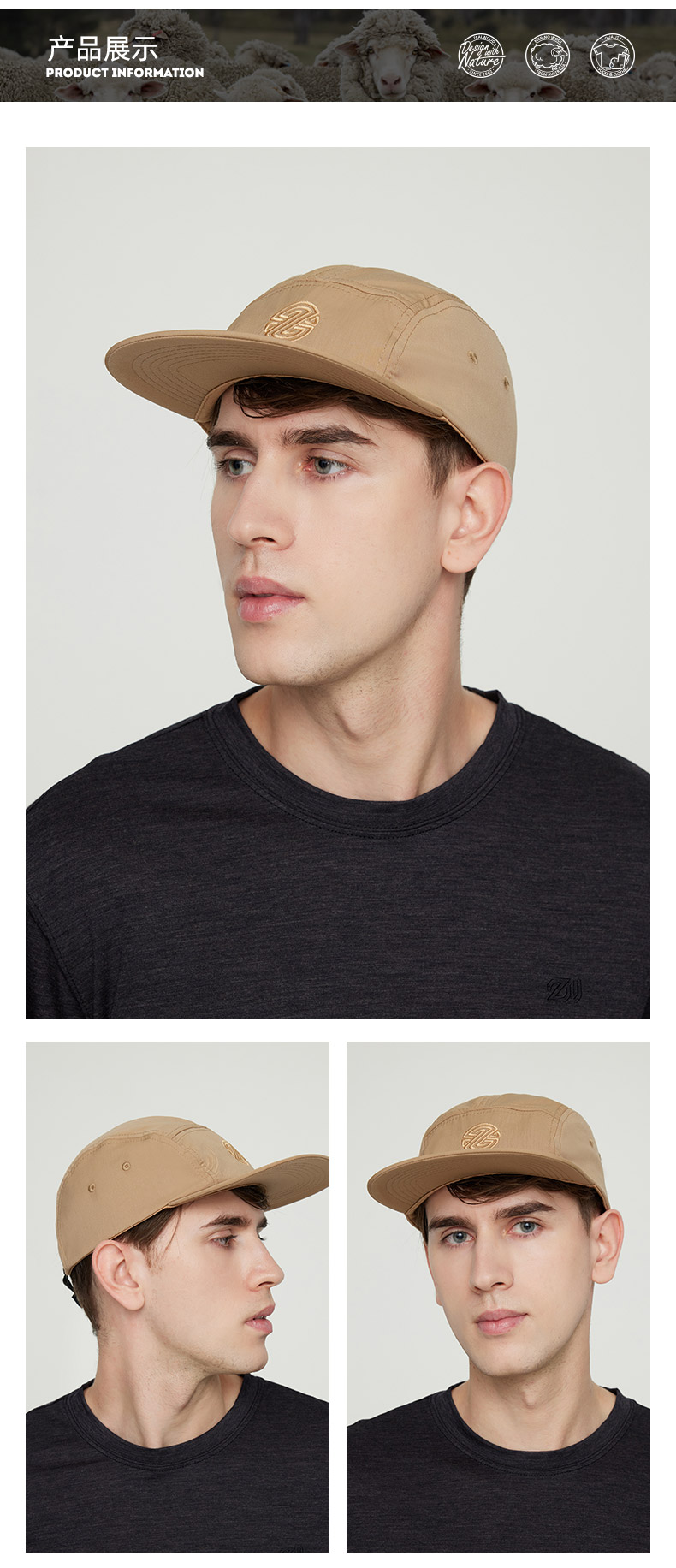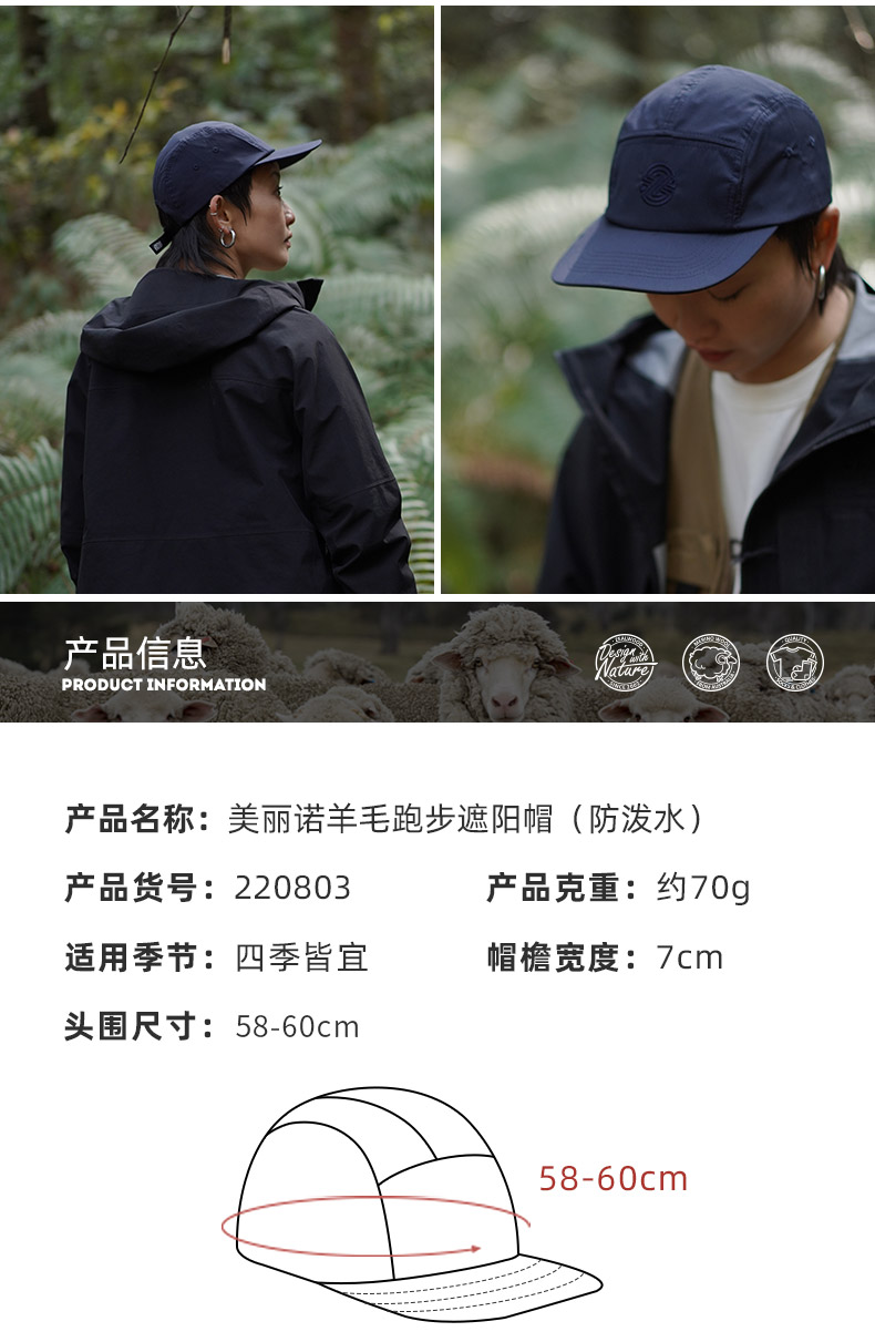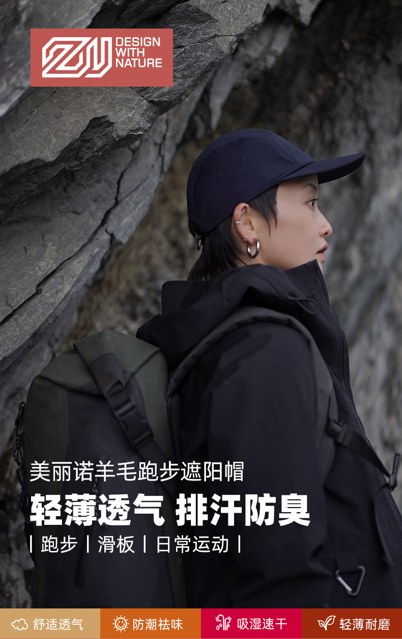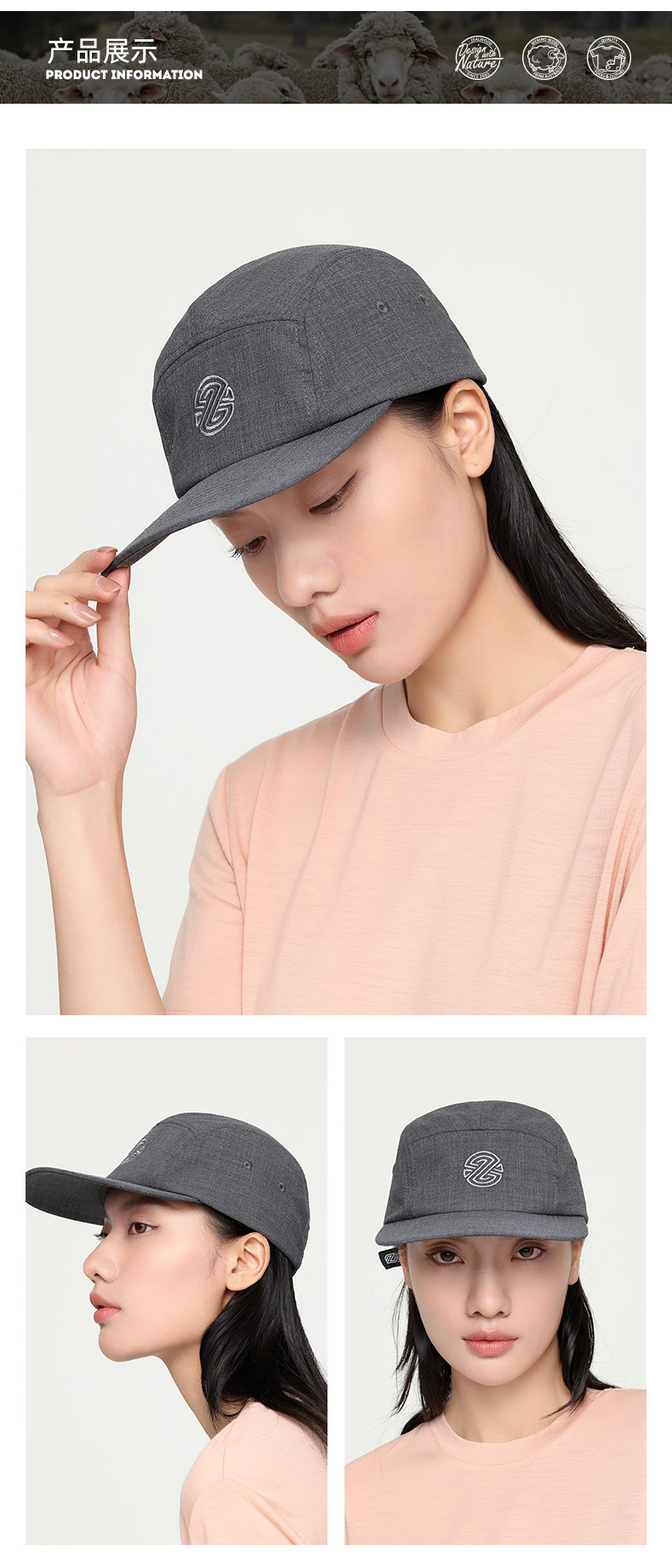 赛乐ZEALWOOD檐鸭舌帽五片帽男女纯色羊毛帽子新款时尚显脸小棒球帽