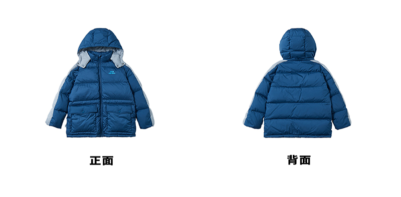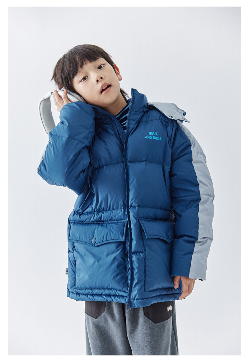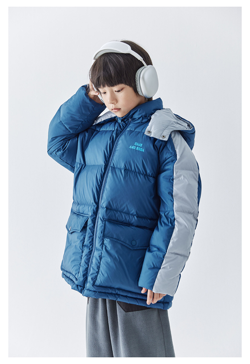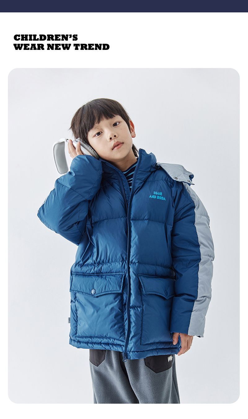 蓝汽水冬季新款撞色连帽羽绒服男童耐洗耐穿儿童保暖外套