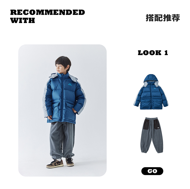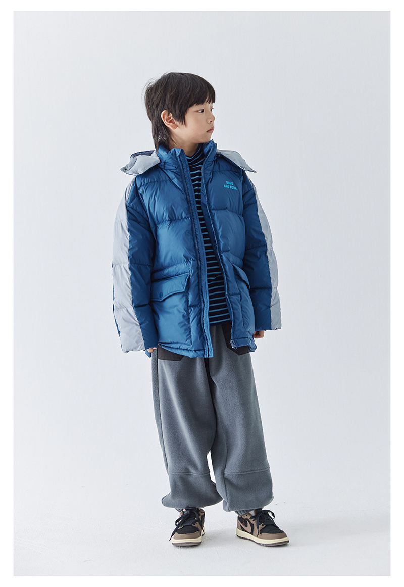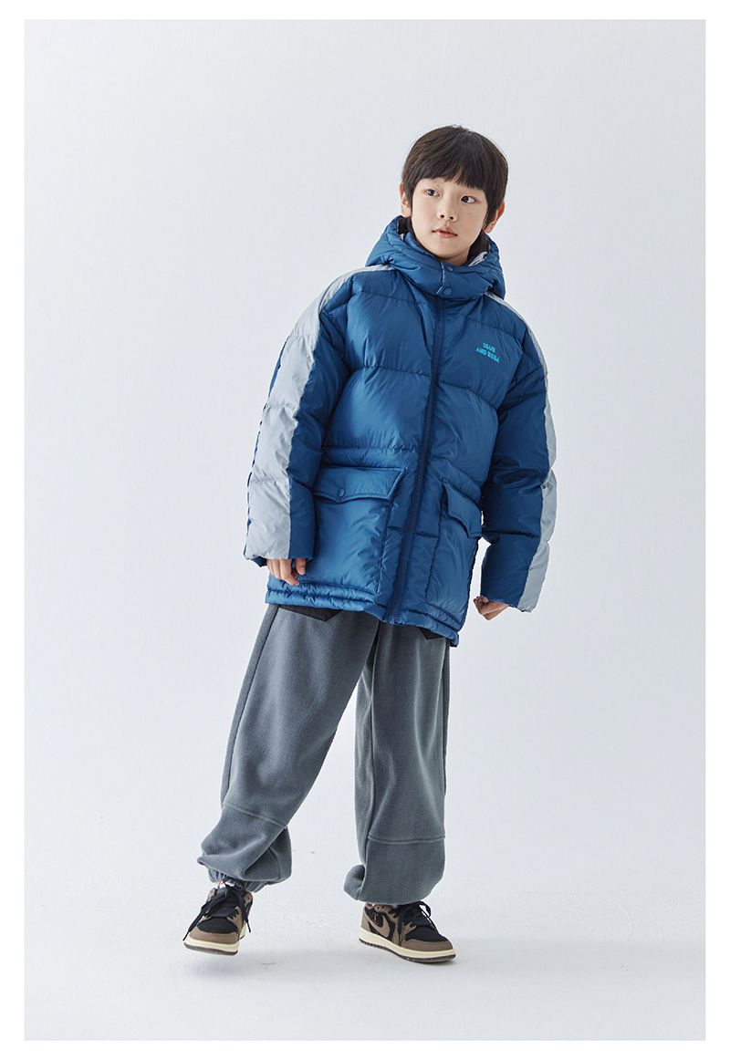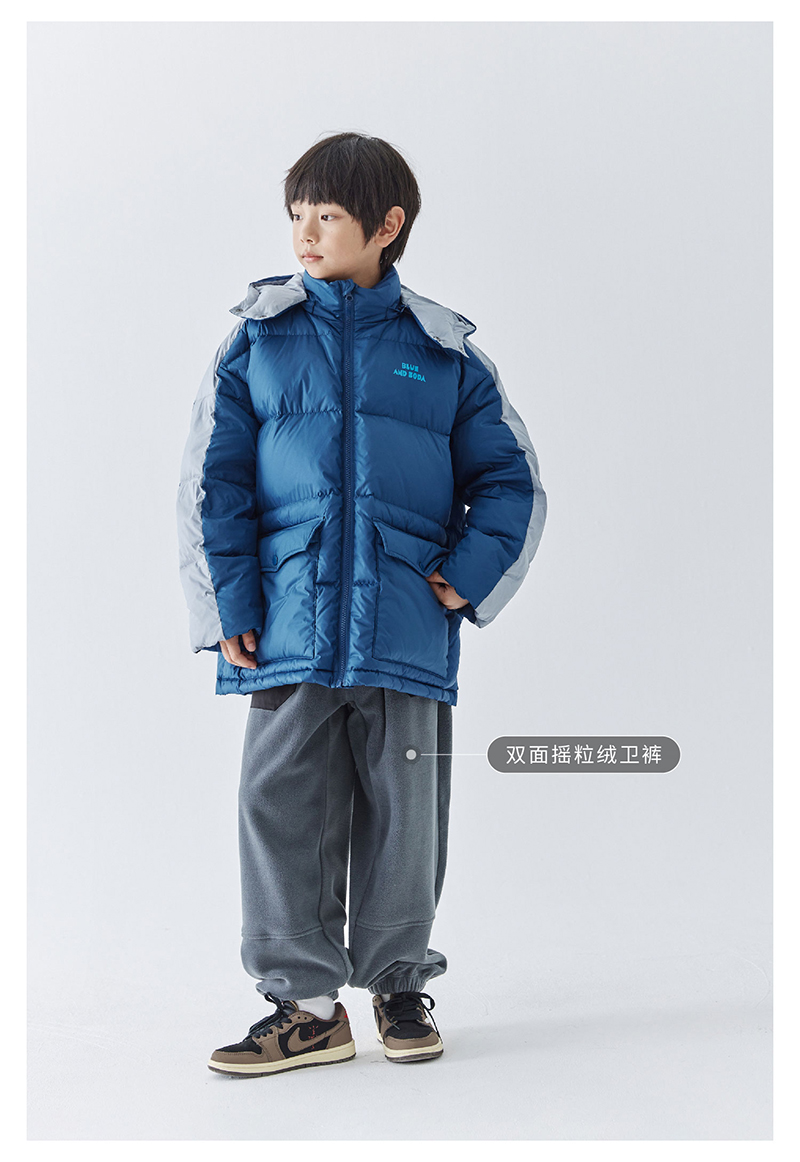 蓝汽水冬季新款撞色连帽羽绒服男童耐洗耐穿儿童保暖外套