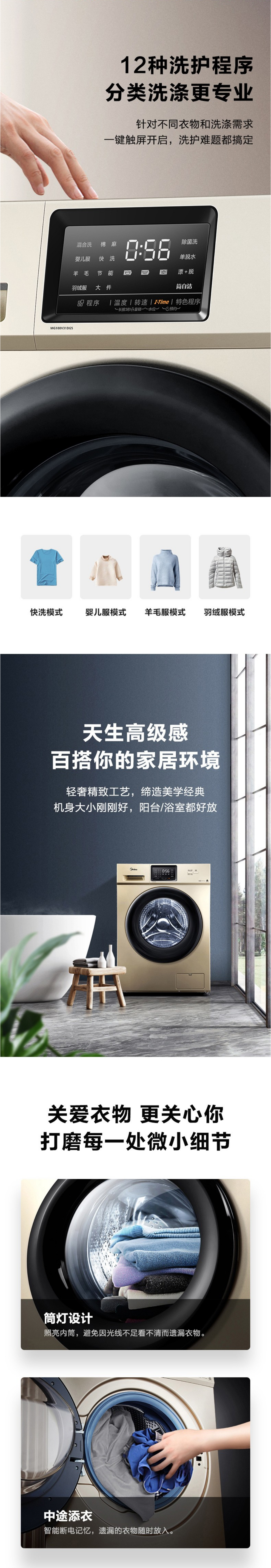 美的(Midea)(252003)10公斤全自动滚筒洗衣机家用变频安静大容量婴儿服洗 MG100V31DG5