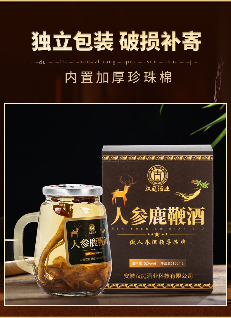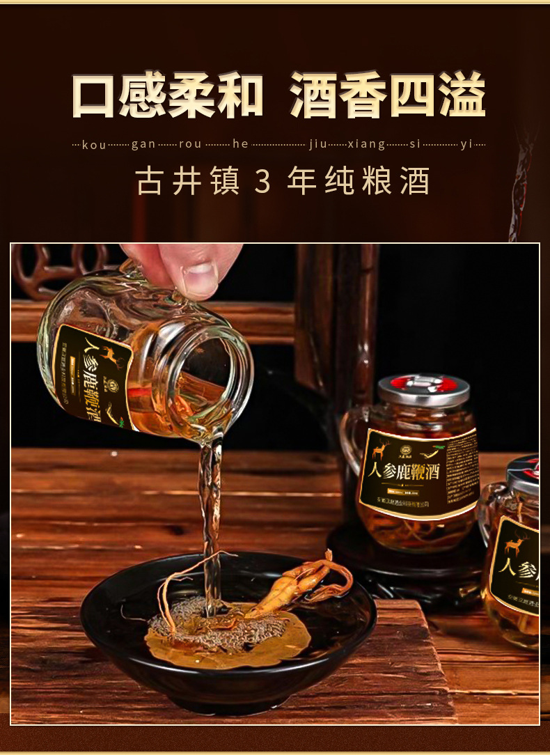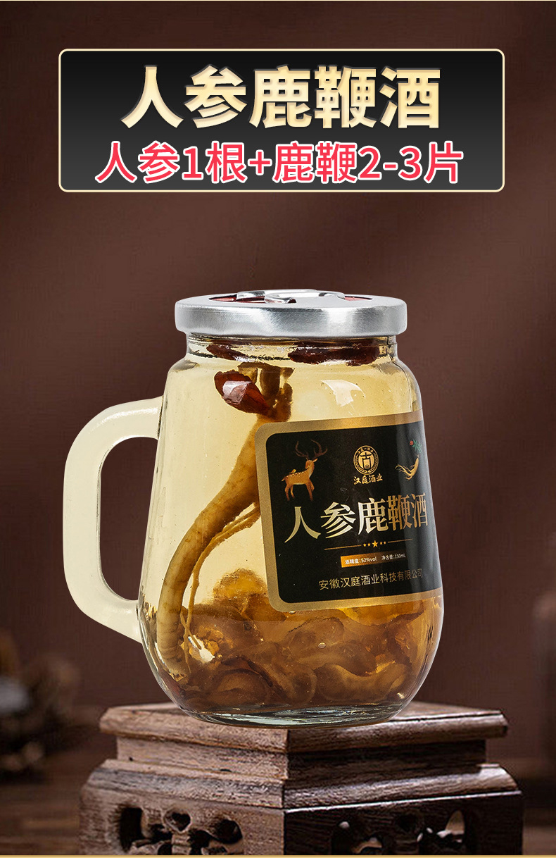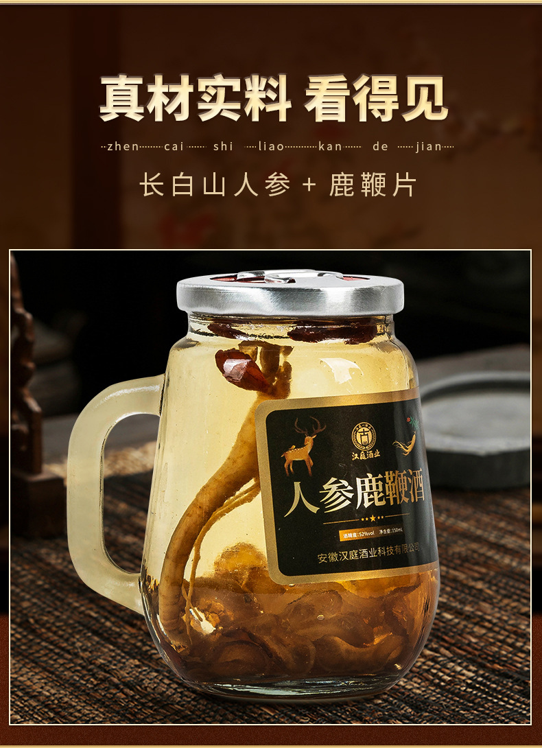 【酒香四溢!人参鹿鞭酒】150ml小瓶,古法酿制,人参与鹿鞭的结合。 礼盒装定 制原料人参酒白酒健康