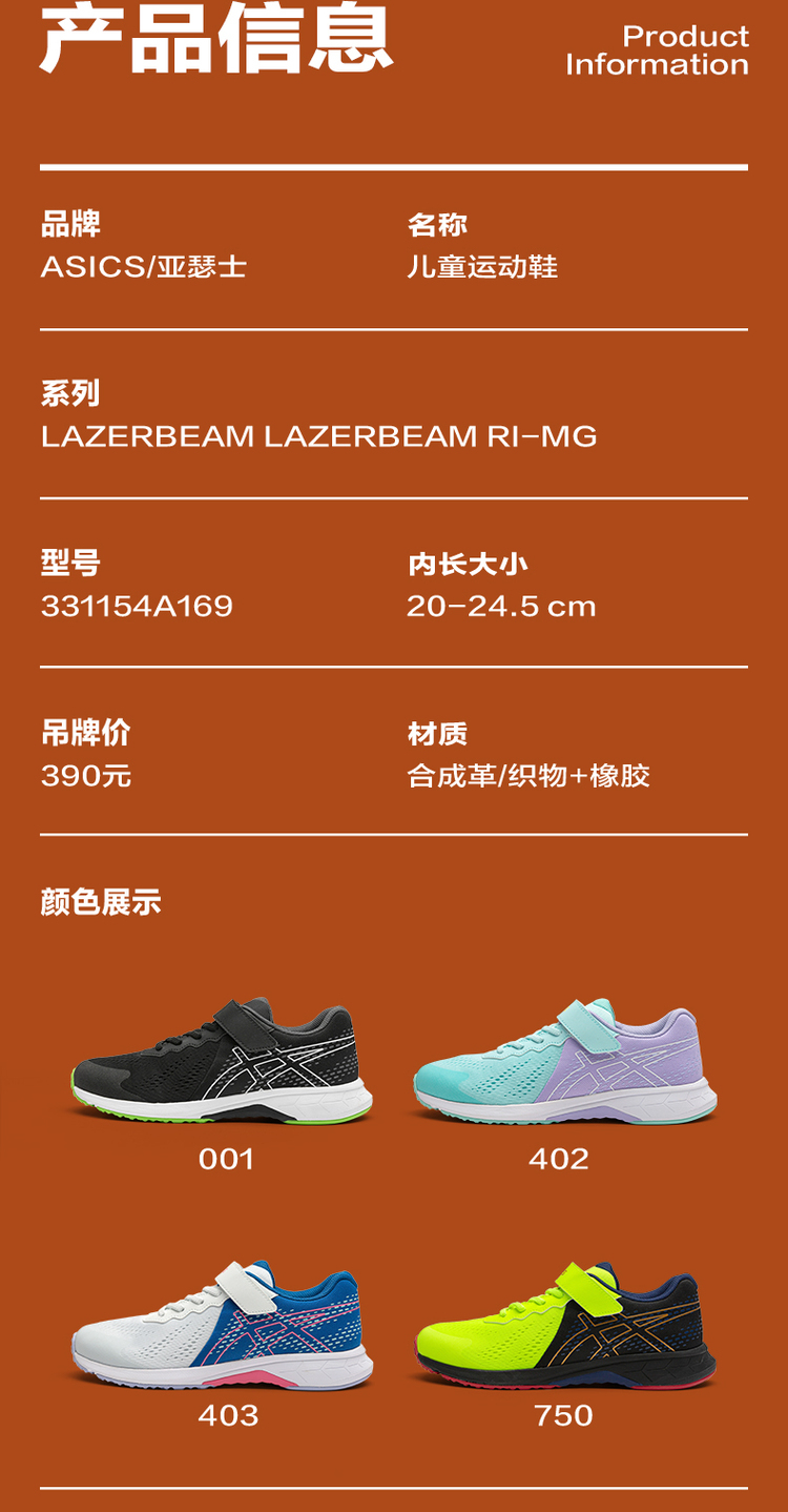 ASICS/亚瑟士童鞋春夏款男女童运动鞋透气休闲耐磨LAZERBEAM