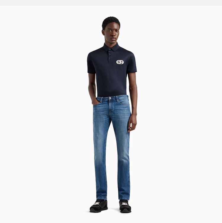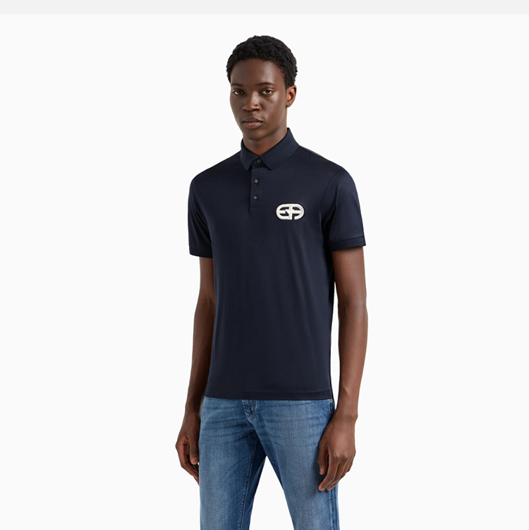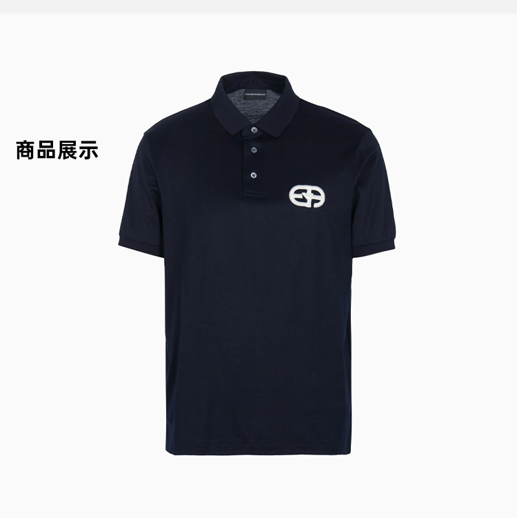 【一】EMPORIO ARMANI 阿玛尼 男士 ASV 徽标凸纹刺绣莱赛尔混纺针织短袖 Polo 衫 深蓝色 8N1FB6 1JUVZ 0920