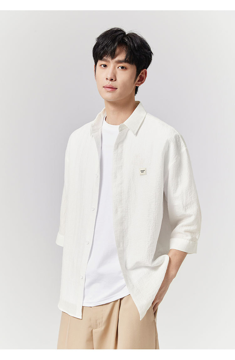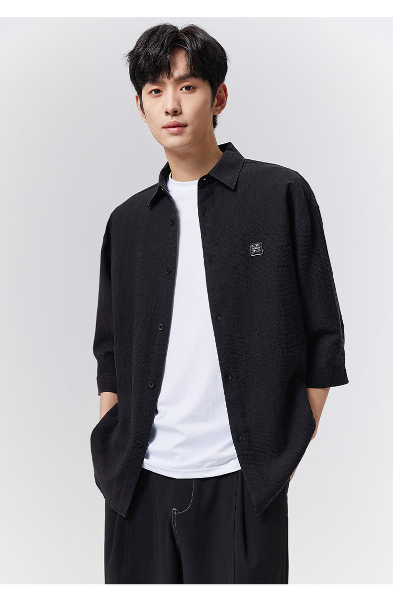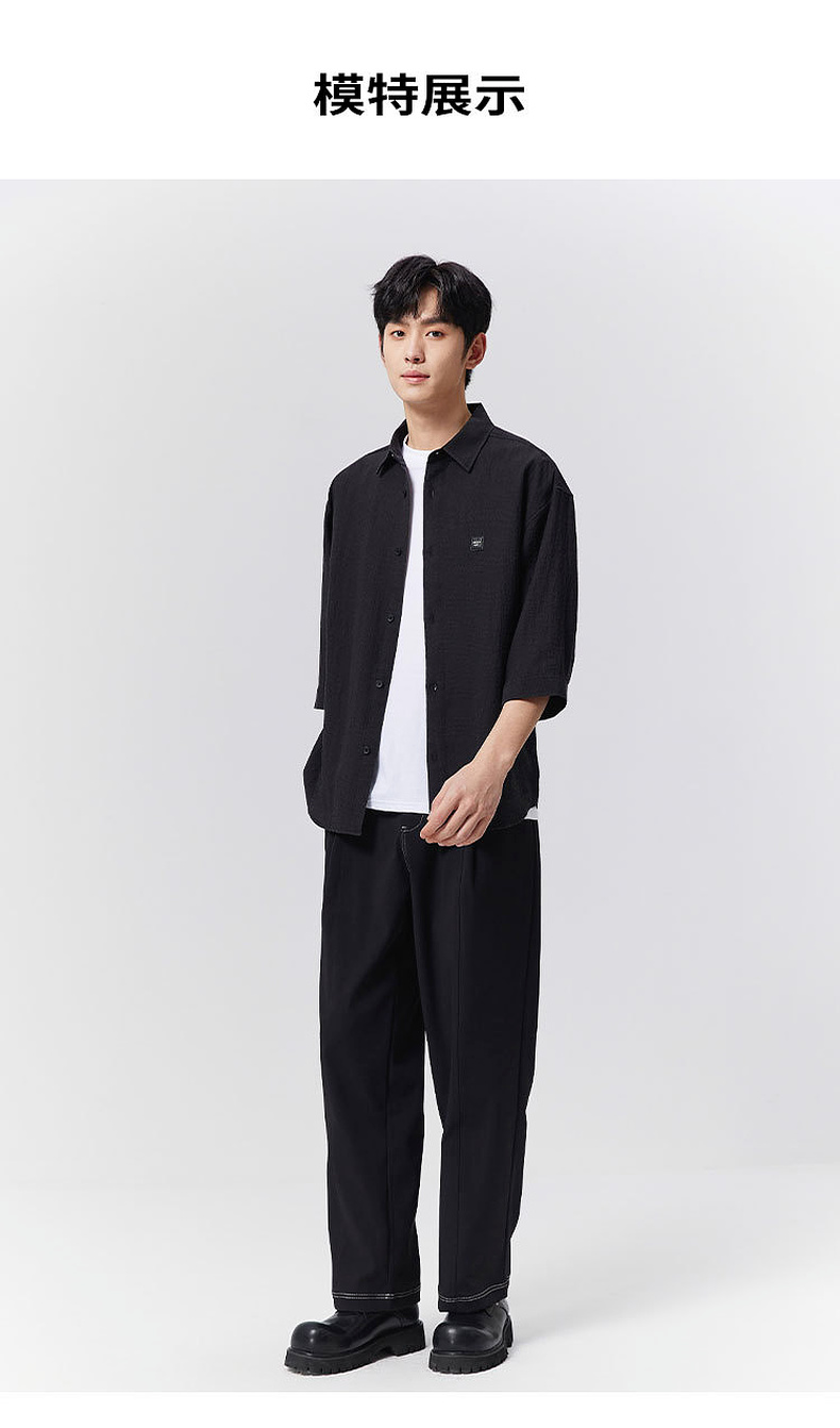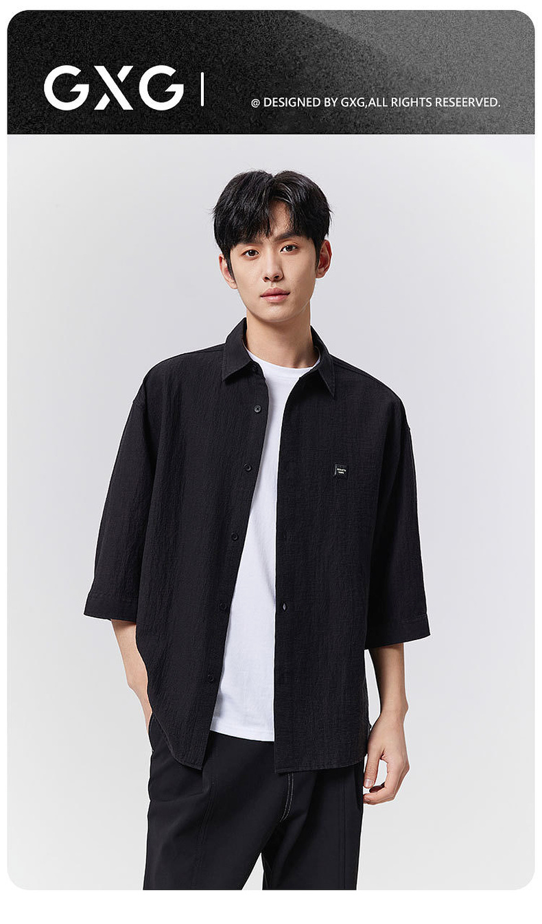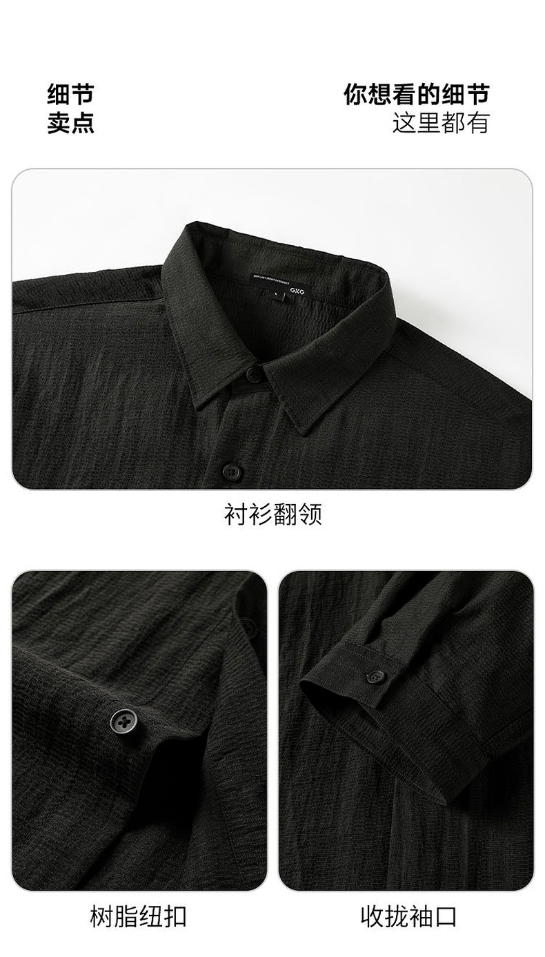 GXG男装【褶皱肌理】25夏季日常翻领休闲户外通勤男式短袖衬衫K&C