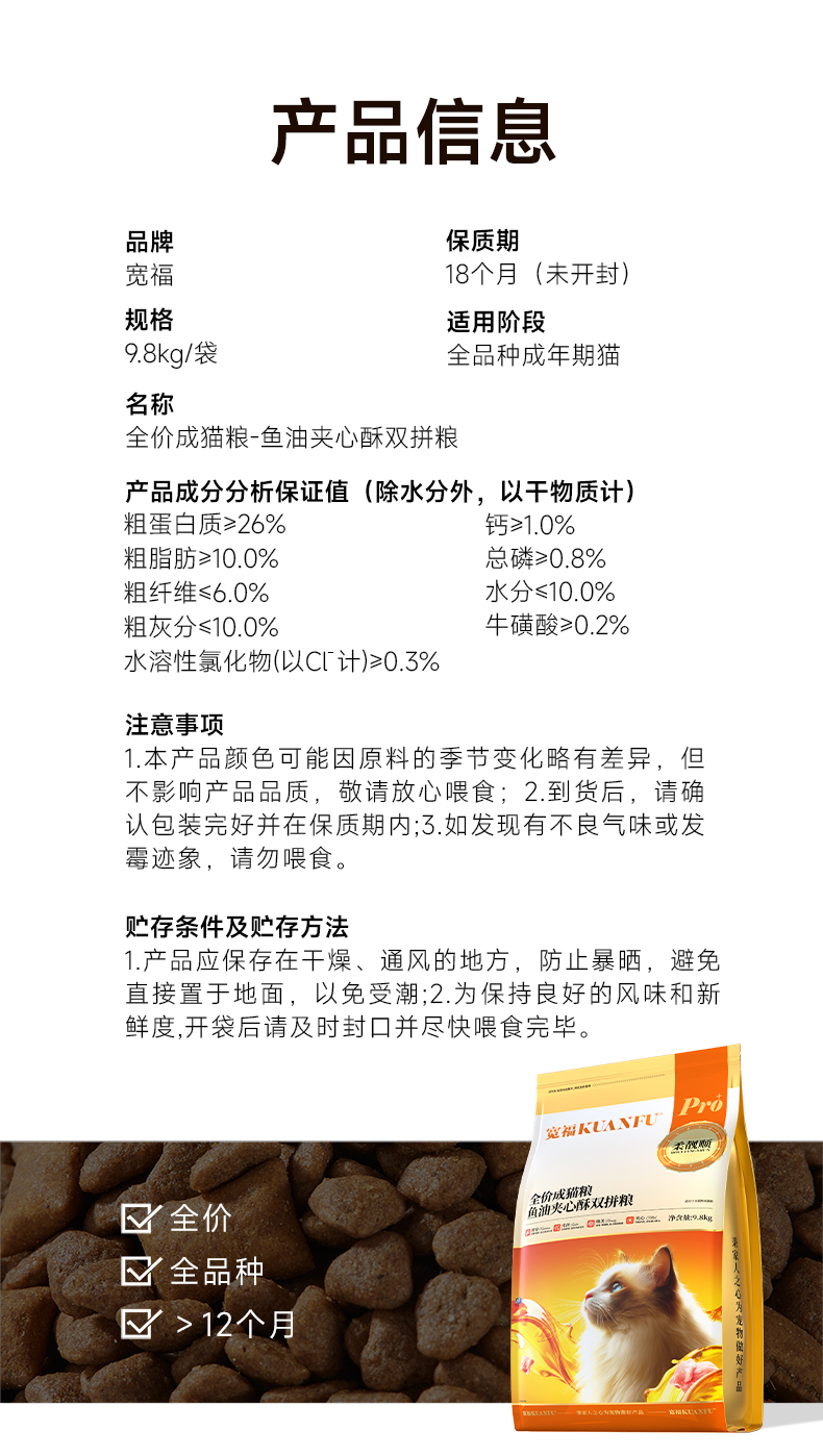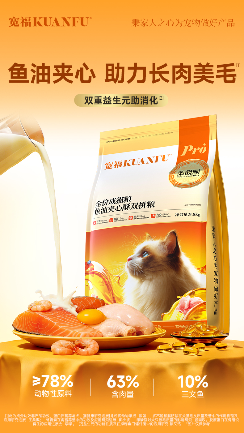 【新品】【鱼油夹心酥双拼猫粮】宽福 夹心酥脆 鸡肉 三文鱼肉 双重肉源 蛋黄粉 卵磷脂 鱼油 双重益生元 助益肠胃好吸收