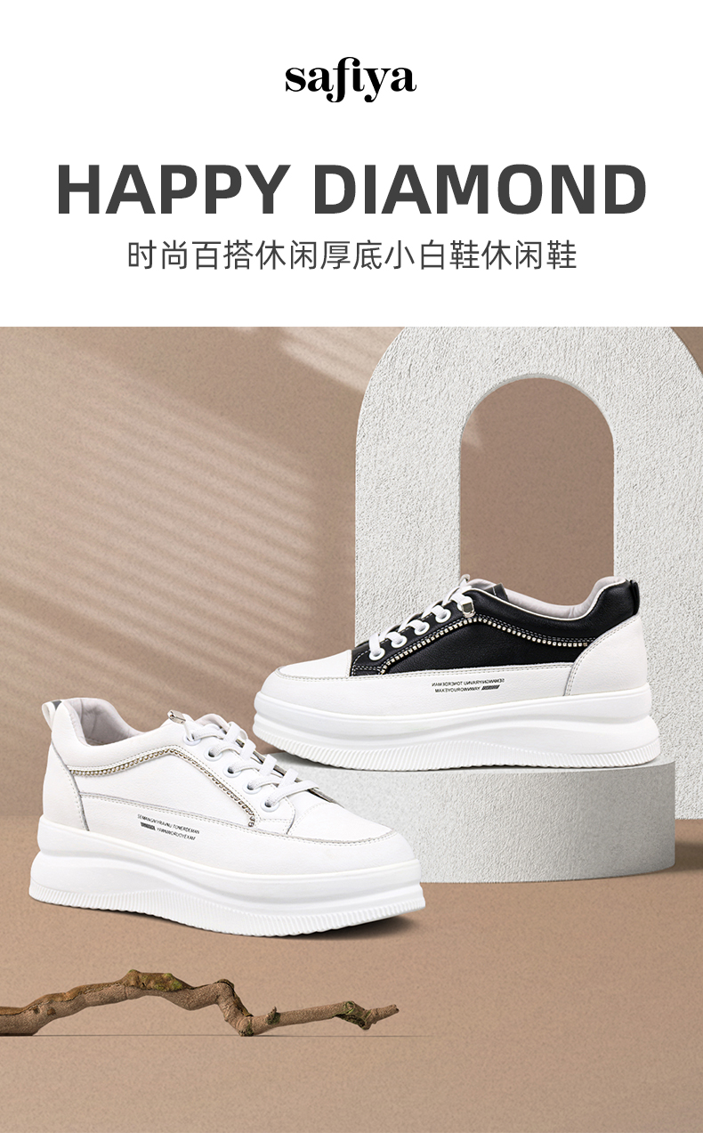 Safiya索菲娅新款弹力带舒适小白鞋2022牛皮百搭休闲鞋SF21112036