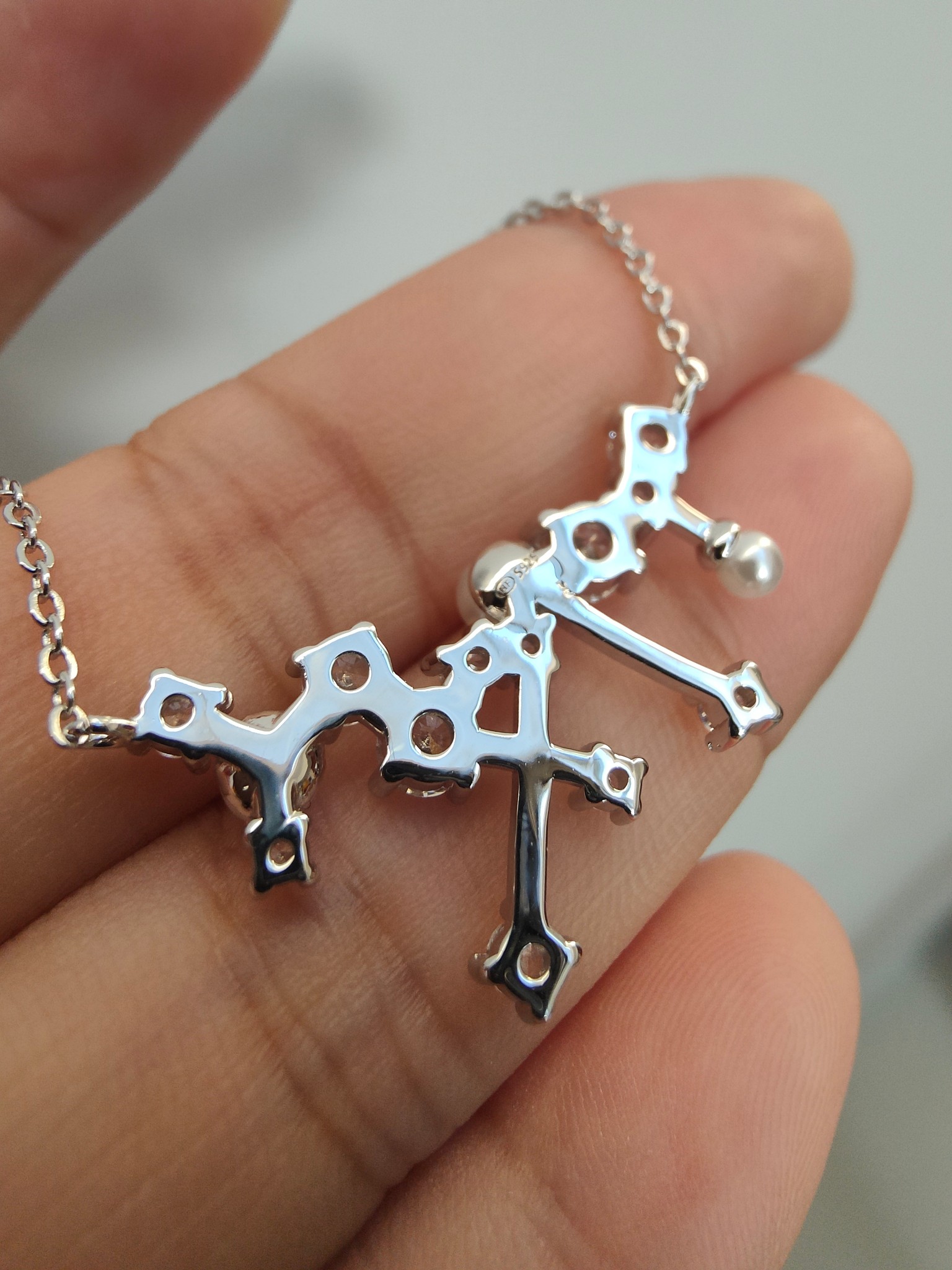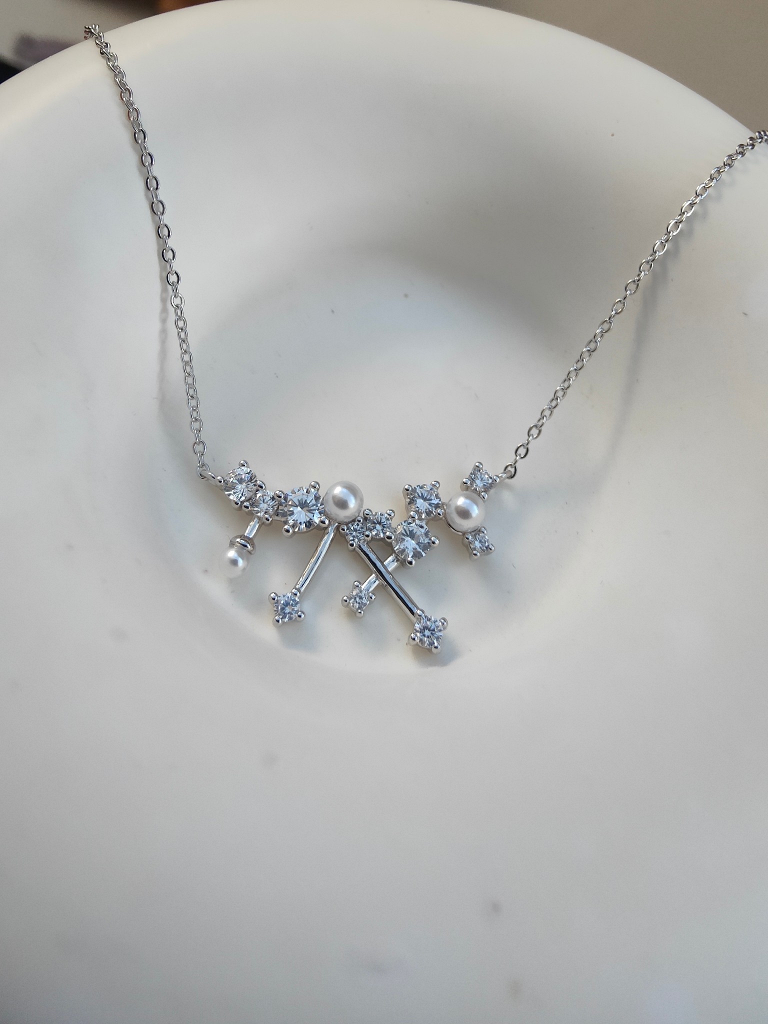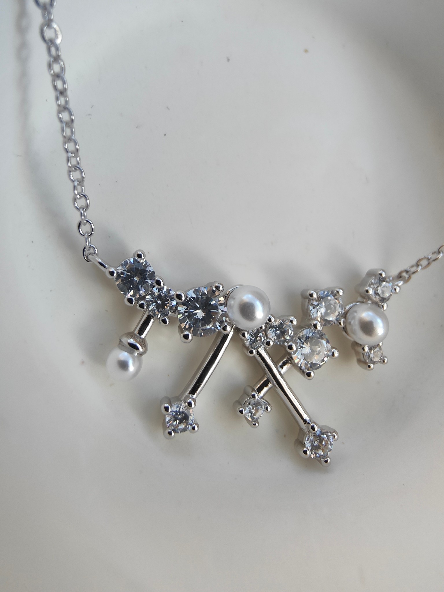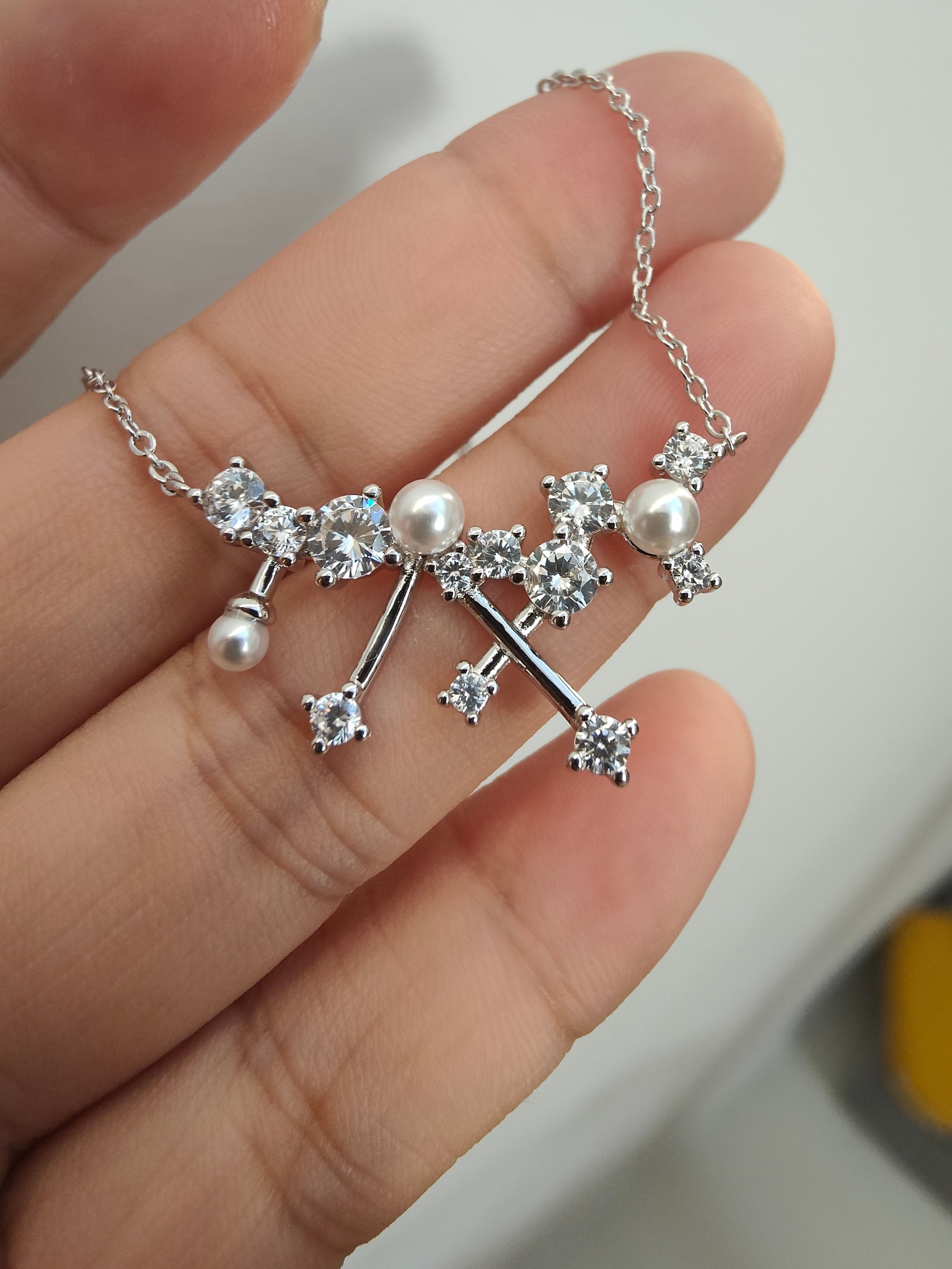 匠人以大小不一的爪镶锆石勾勒出灵动立体的星云造型,传递宇宙的梦幻浪漫!莹润贝珠点缀其中,营造出视觉错落惊喜,注入温柔优雅气质!寓意幸运!精致百搭修饰锁骨