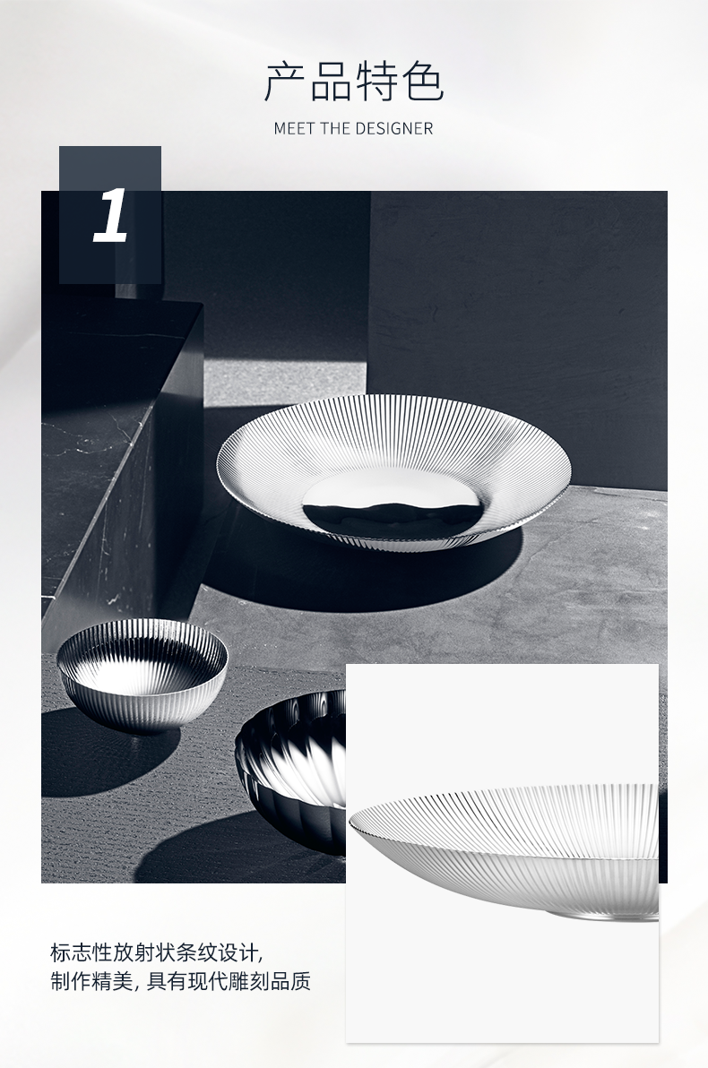 Georg Jensen乔治杰生西餐餐盘不锈钢橡木托盘甜品盘子北欧现代风