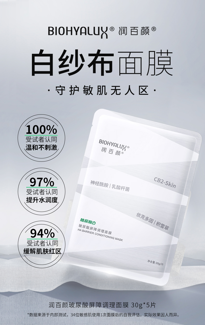 【5折】润百颜玻尿酸屏障调理面膜 30g*5片 / 效期至2026.7.24