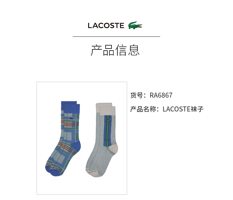 【海南专供价】Lacoste法国鳄鱼男女同款新款时尚百搭袜子RA6867-10