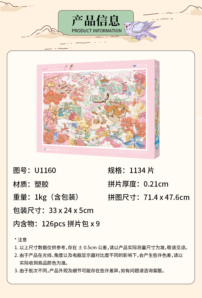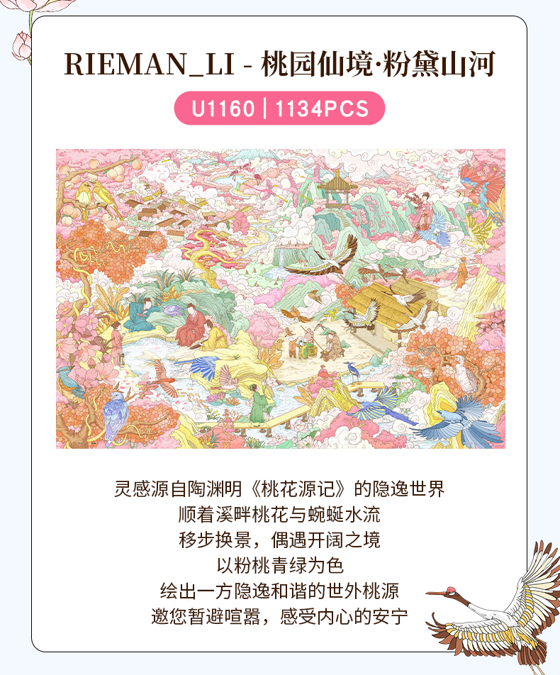 1134片 平面塑料拼图 U1160 RIEMAN_LI-桃园仙境 粉黛山河【Showpiece L】