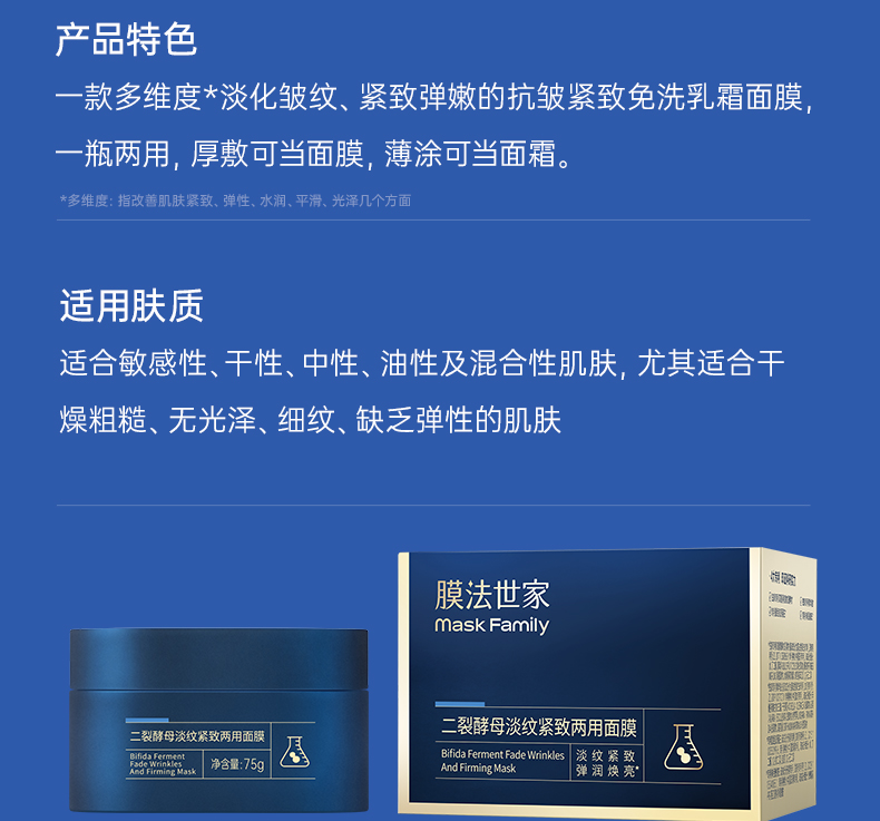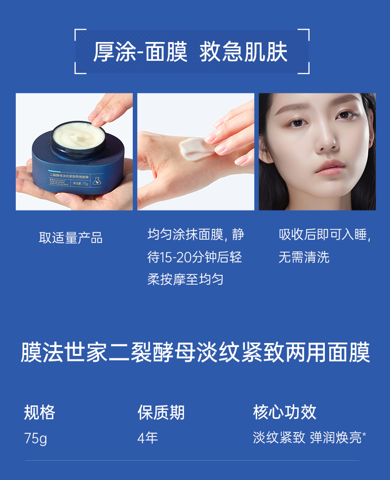 【弹润提亮】膜法世家二裂酵母淡纹紧致两用乳霜面膜75g