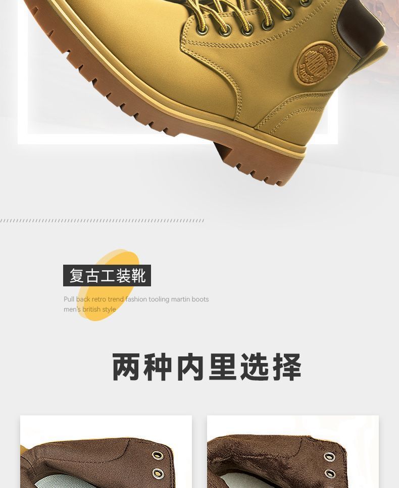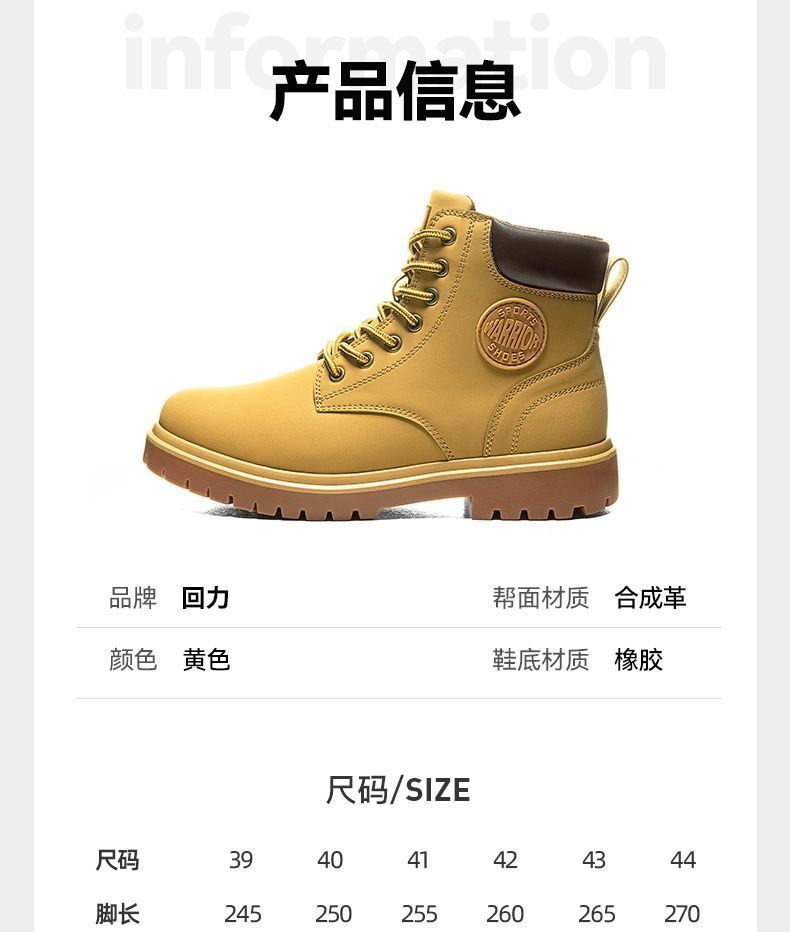 回力马丁靴男秋冬季新款英伦风ins百搭时尚高帮大黄靴厚底潮鞋男
