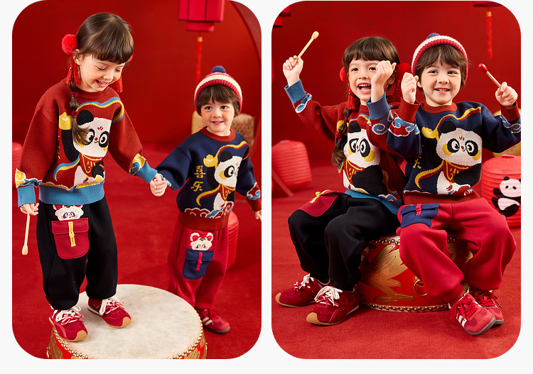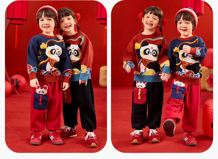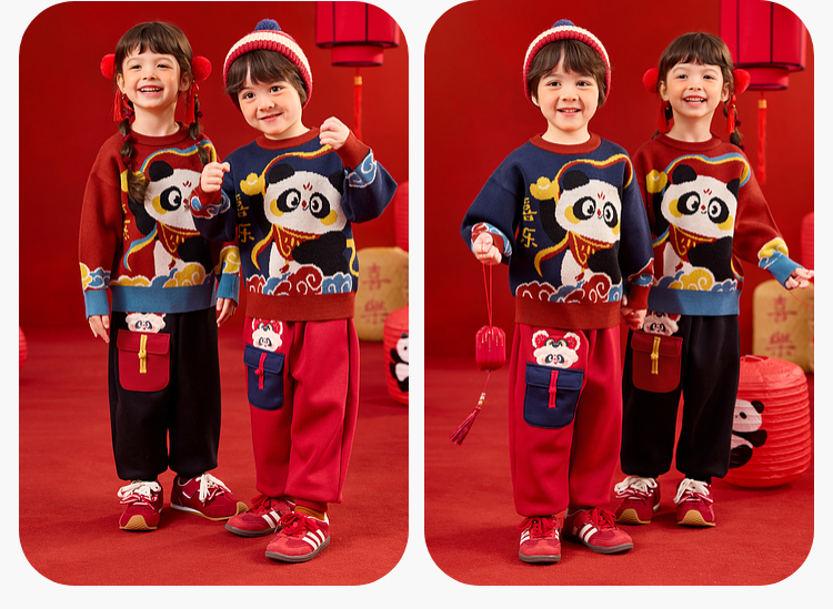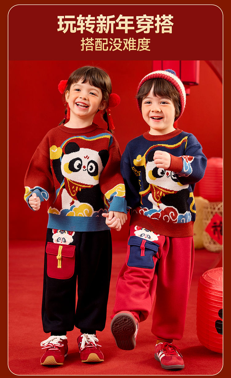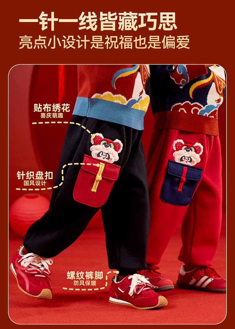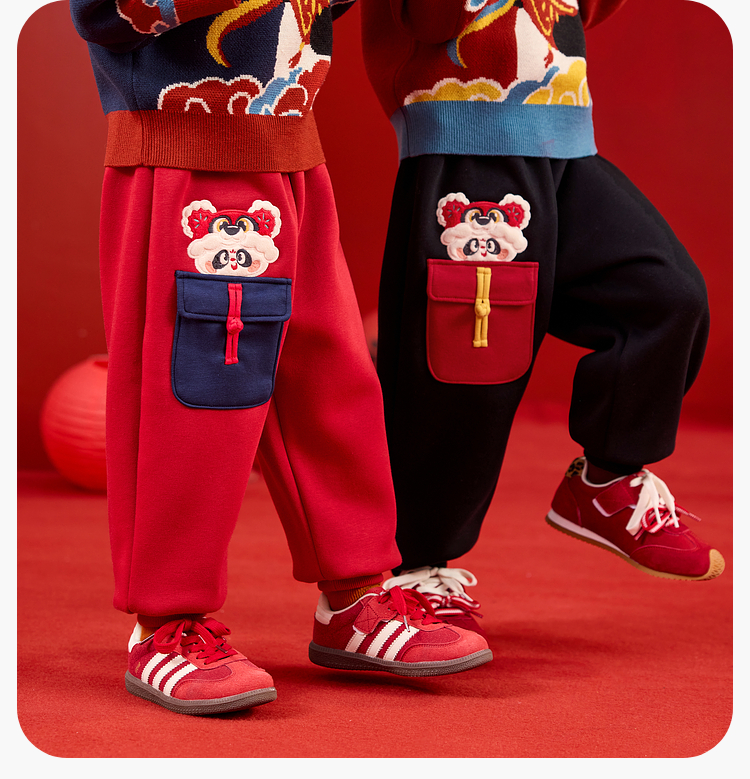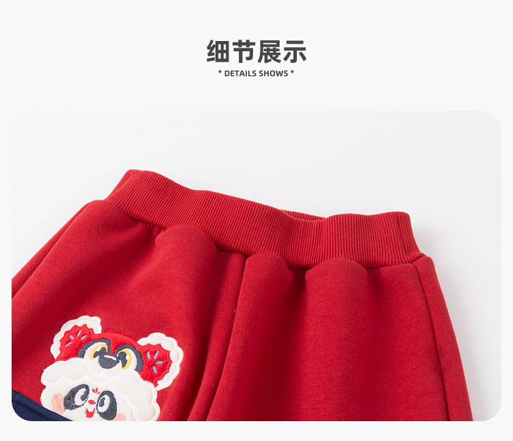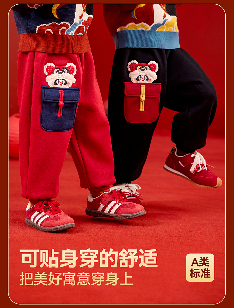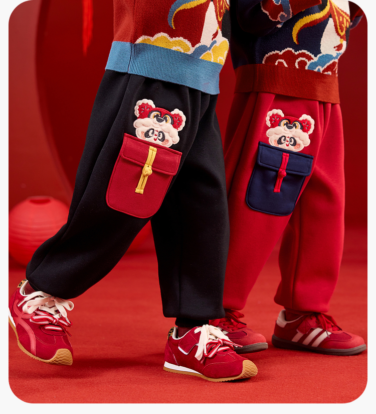 嘟嘟家童装男童裤子冬季加绒女童新年长裤儿童拜年服宝宝年装喜庆D5DBN011