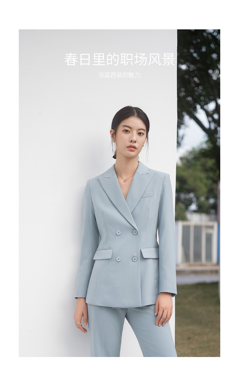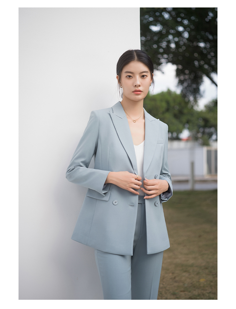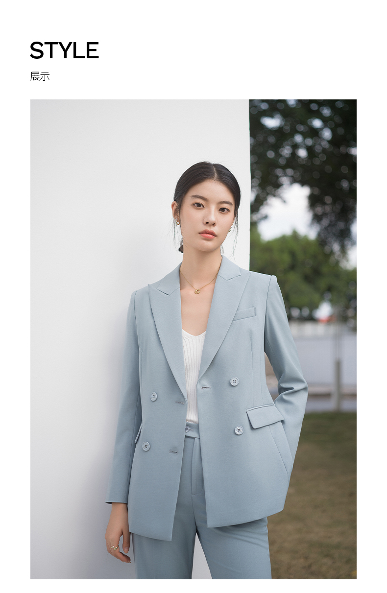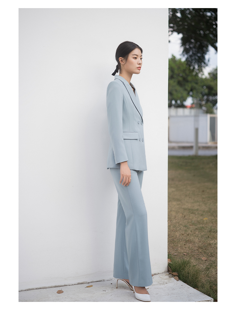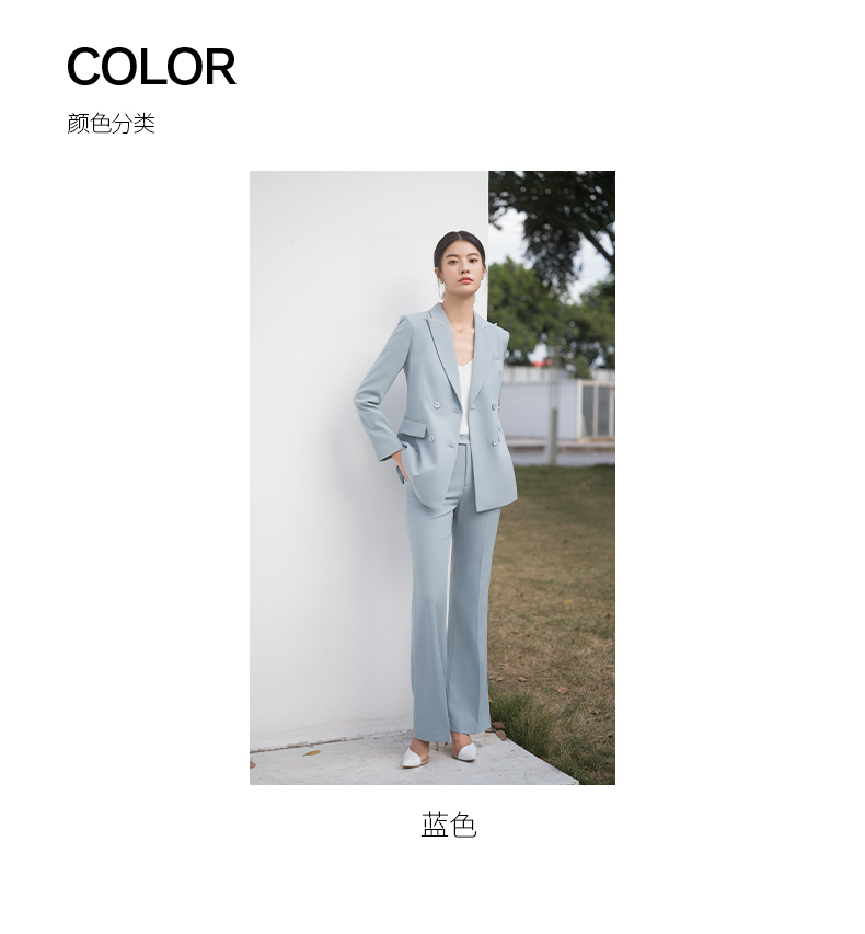 IWY/新款春季雾霾蓝色西装套装长袖宽松版长款西服外套两件套通勤C14229+P34229