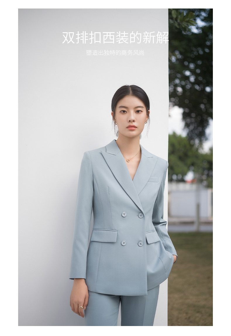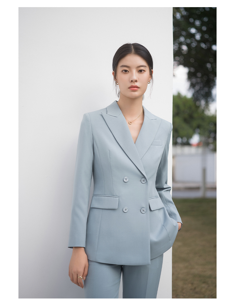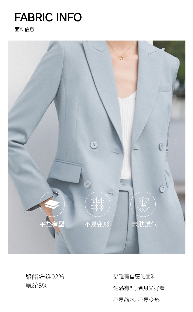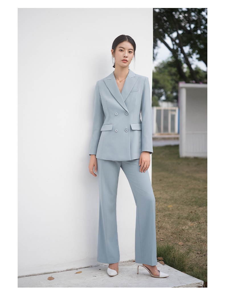 IWY/新款春季雾霾蓝色西装套装长袖宽松版长款西服外套两件套通勤C14229+P34229