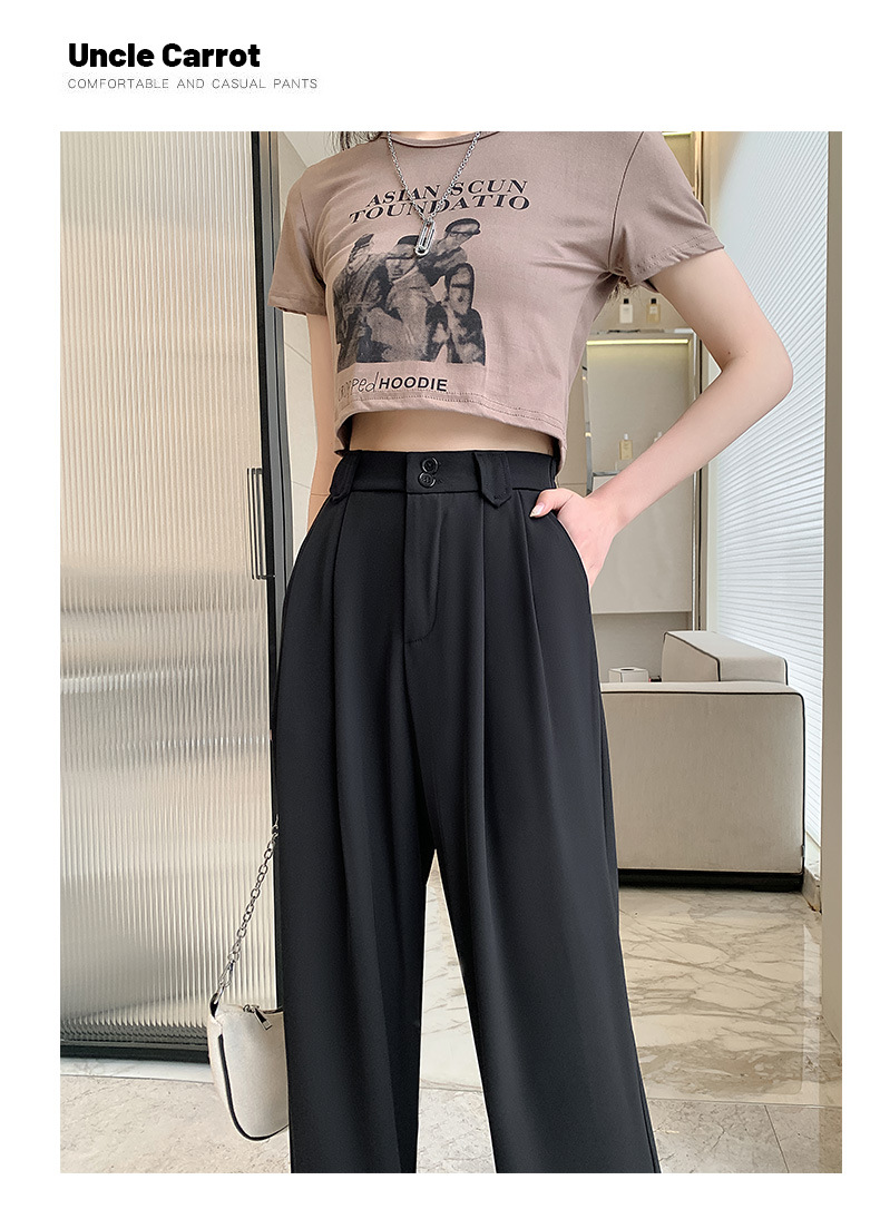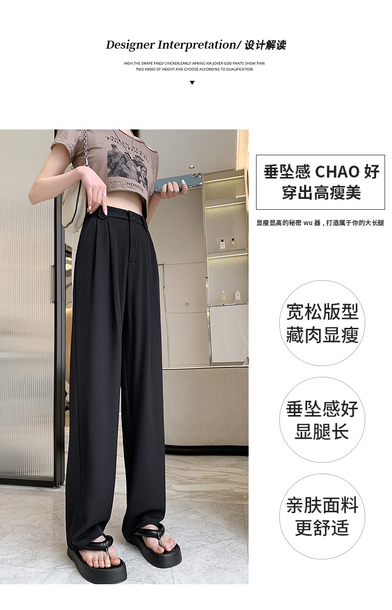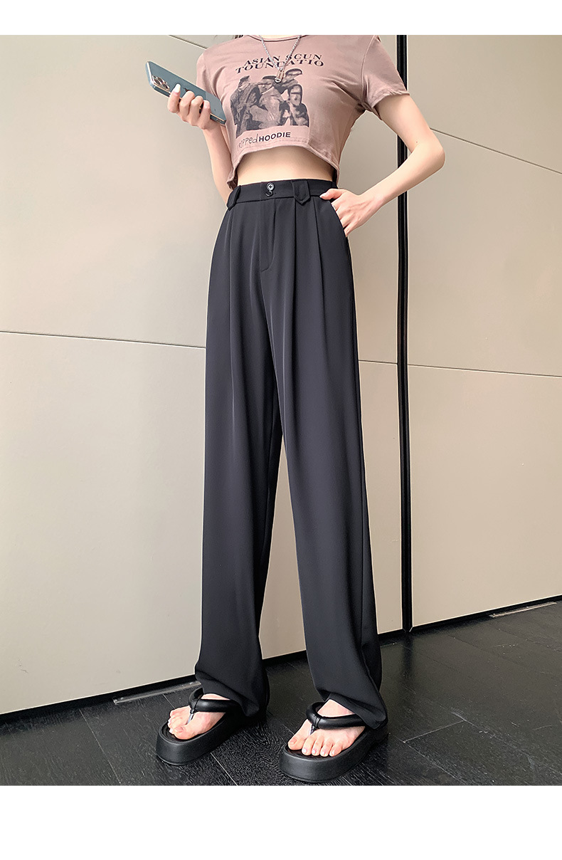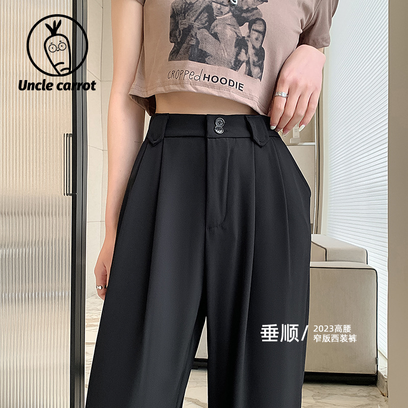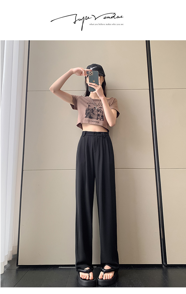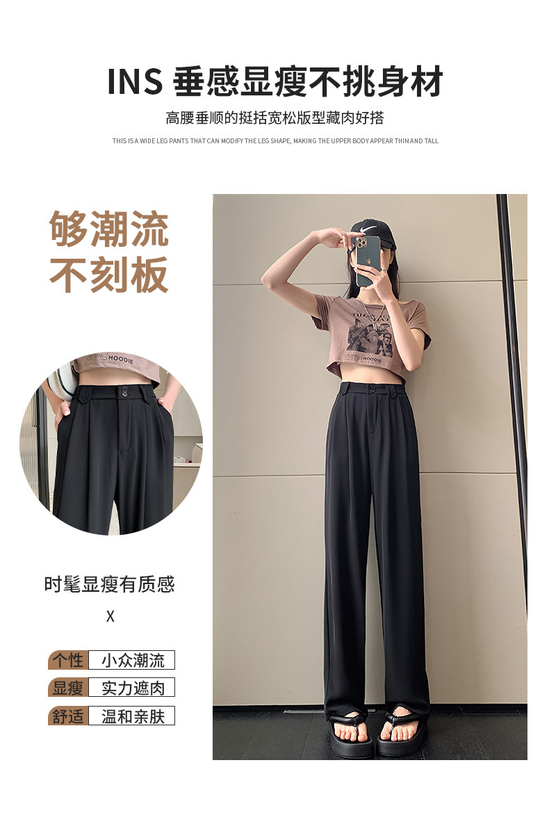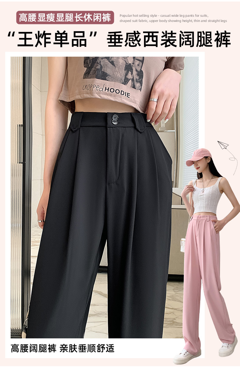 【王奕婷同款抖音爆款】黑色西装女夏季薄款高腰直筒裤休闲阔腿裤