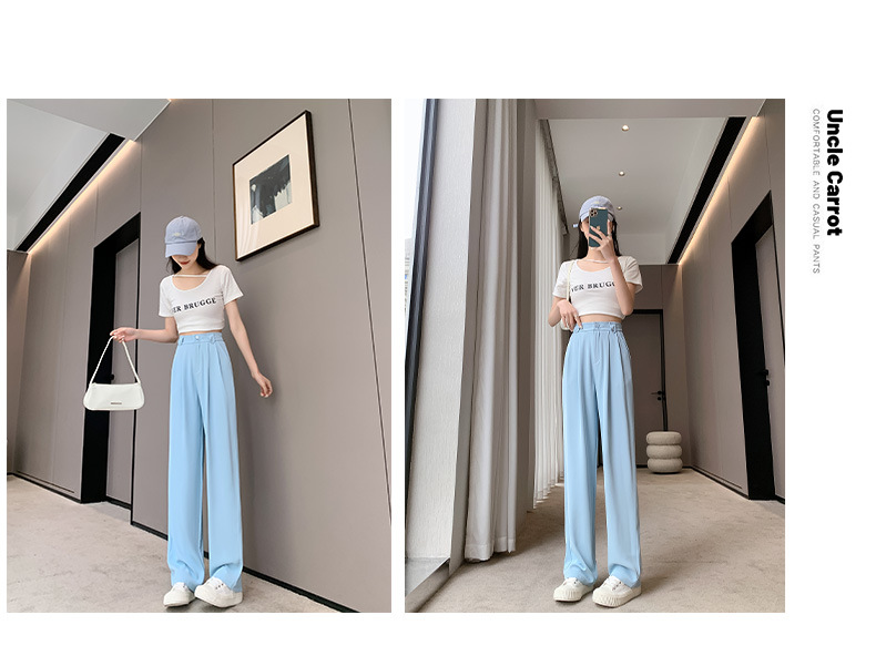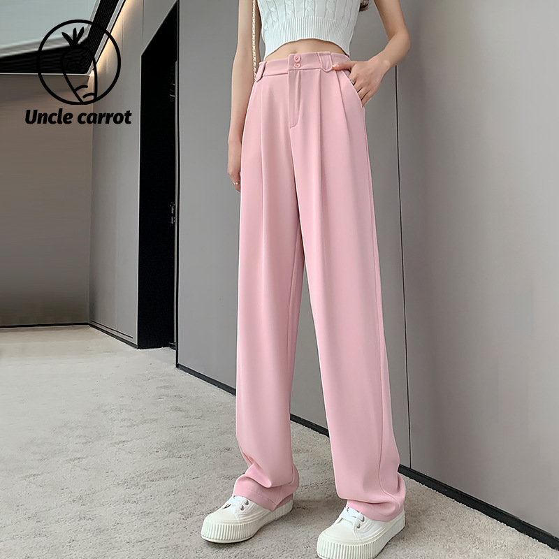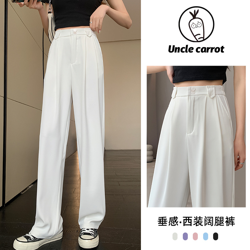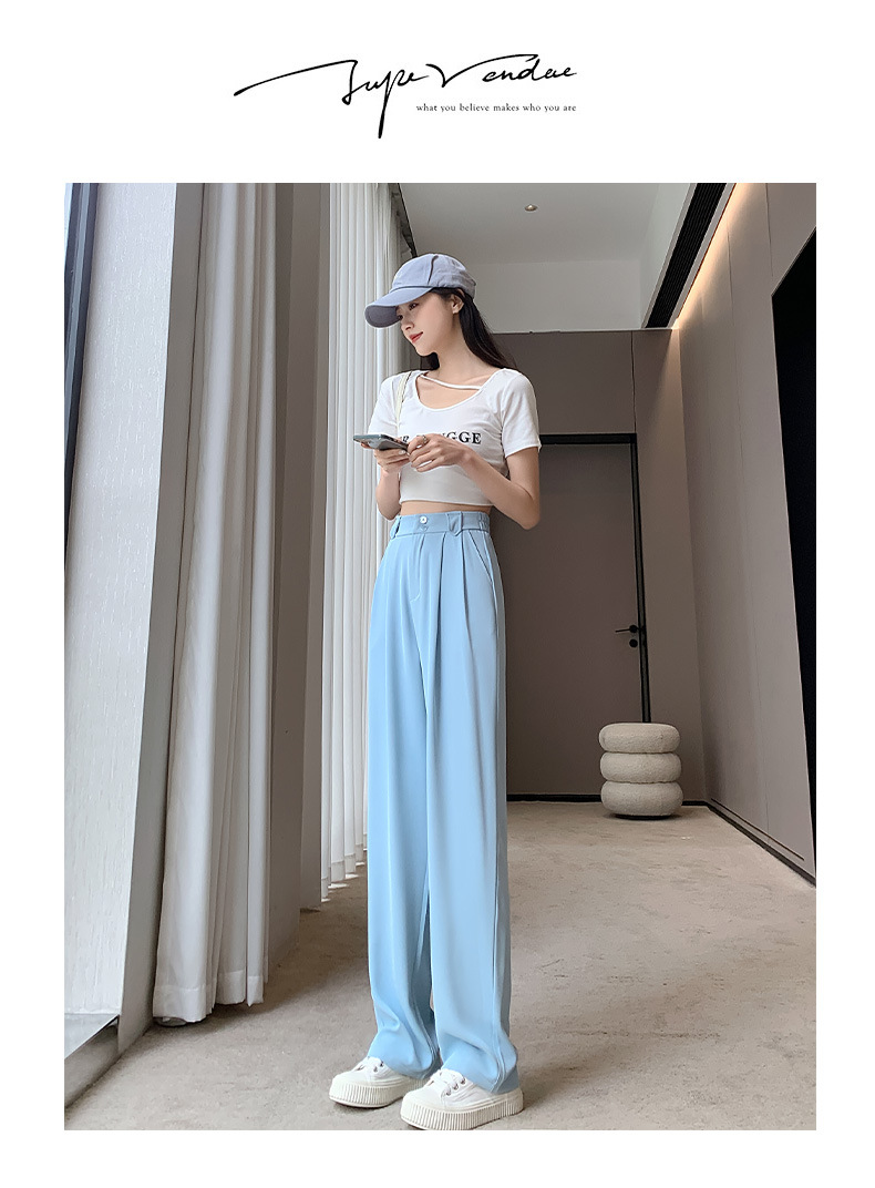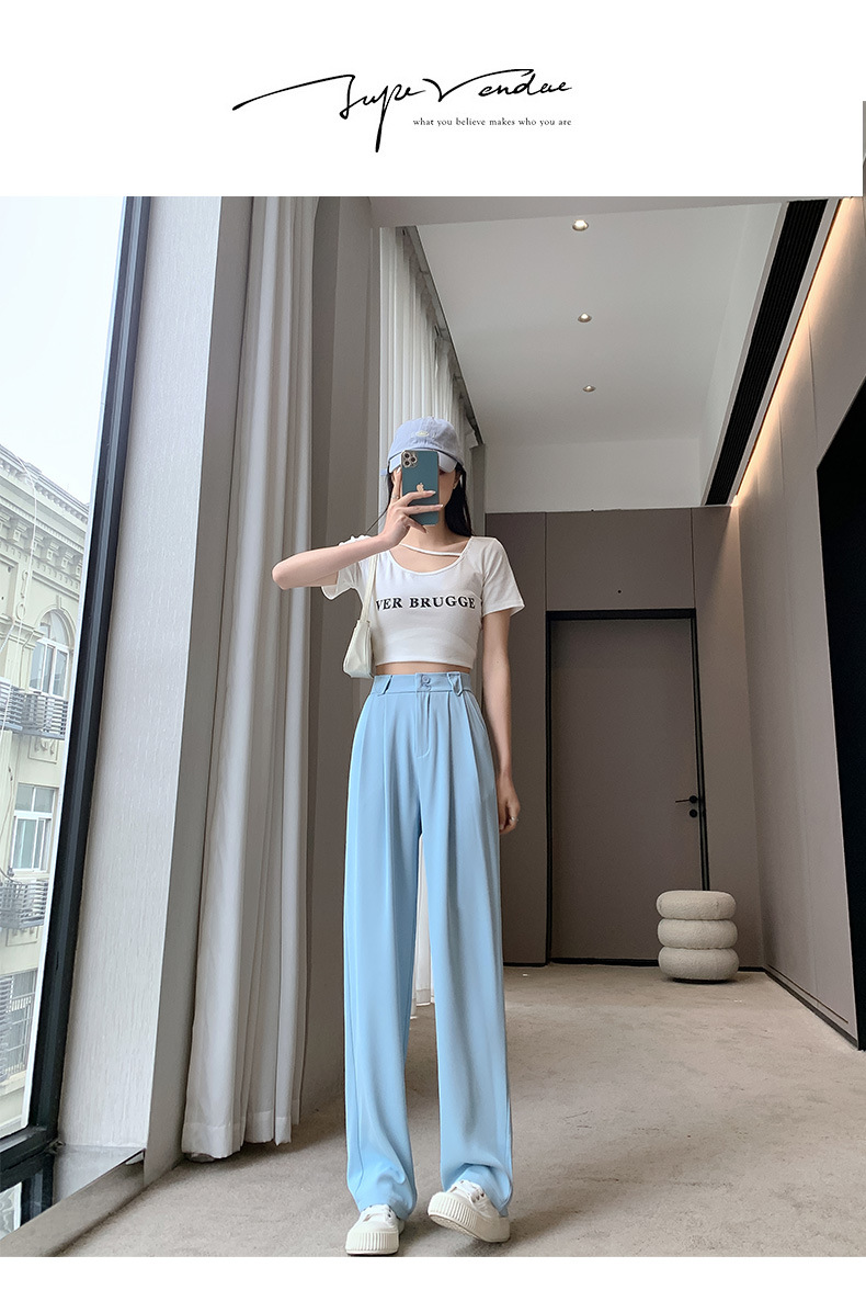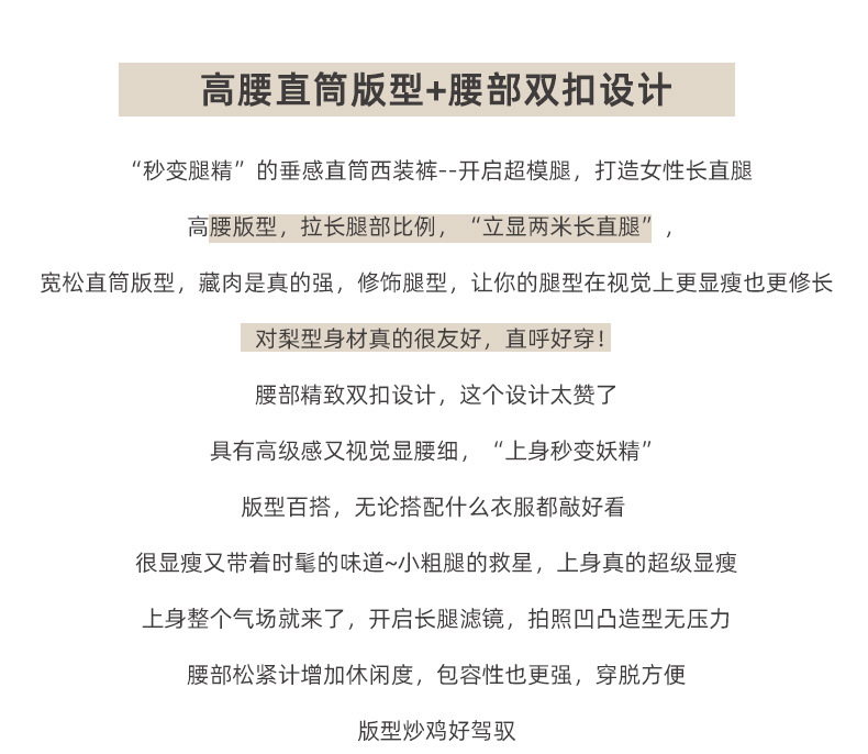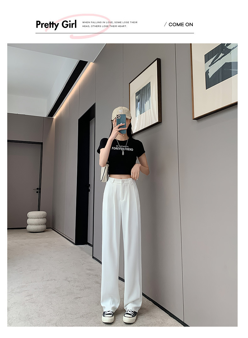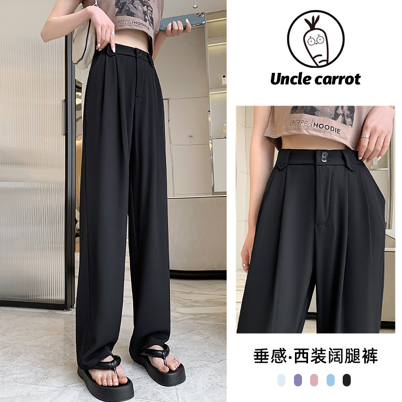 【王奕婷同款抖音爆款】黑色西装女夏季薄款高腰直筒裤休闲阔腿裤