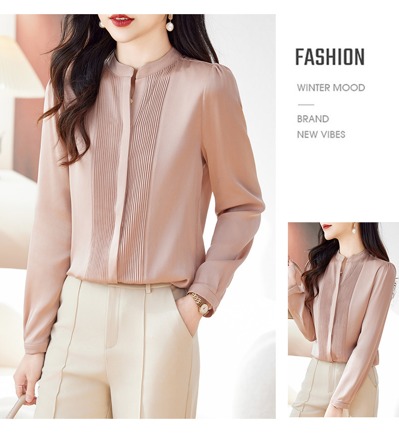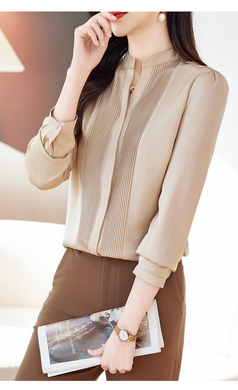 重磅真丝衬衫V领高端早春纯色LS-9505