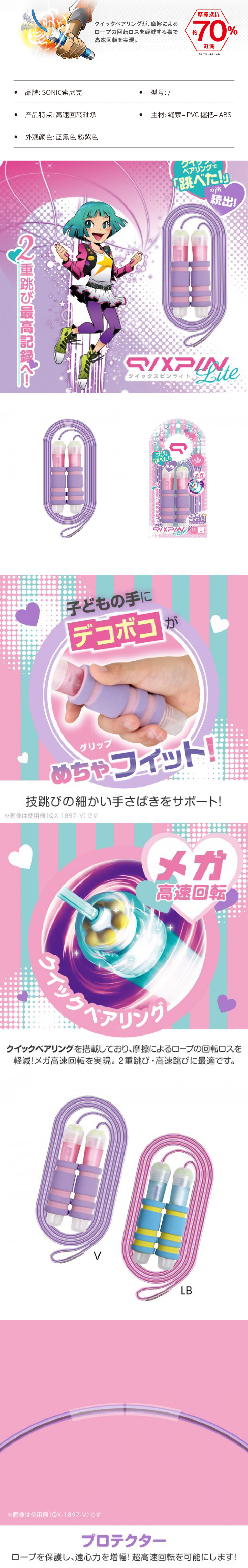 日本SONIC索尼克高速回转跳绳防疲劳握把防卷绳健身跳绳