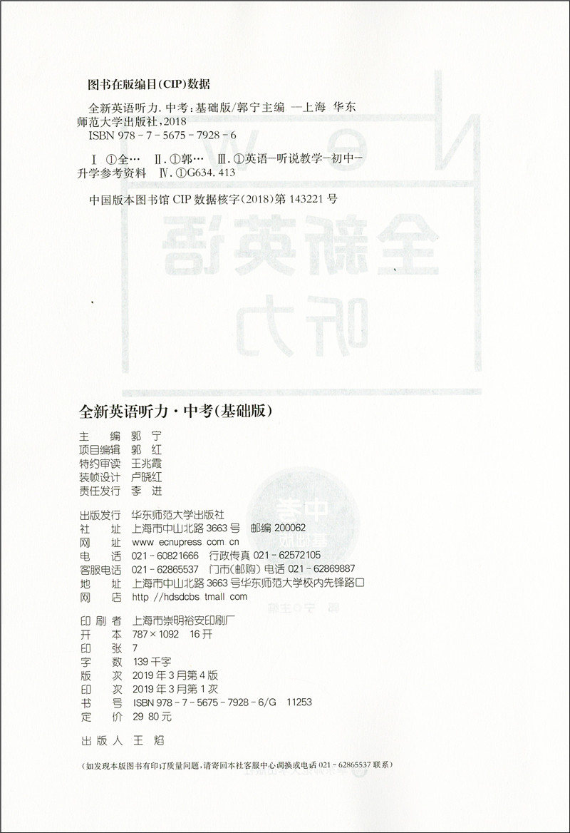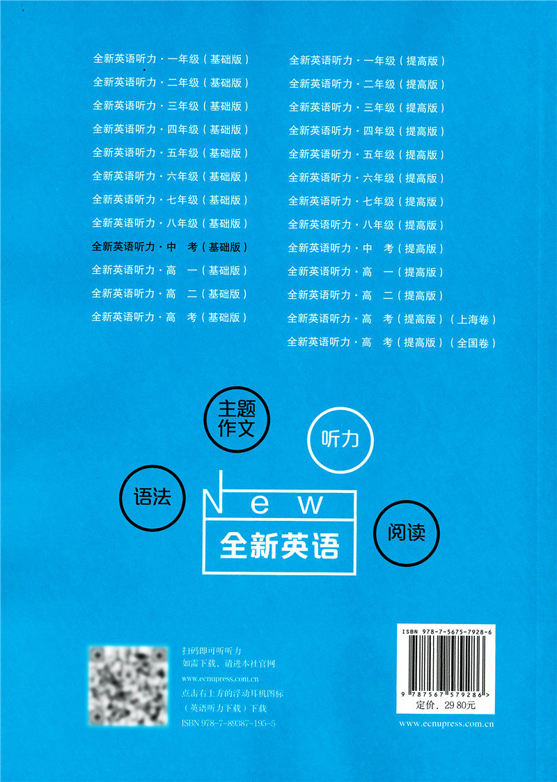 2020新版 全新英语听力中考基础版 9年级中考全新英语听力 上下学期 扫码听录音 初中生英语听力强化训练 华东师范大学出版社