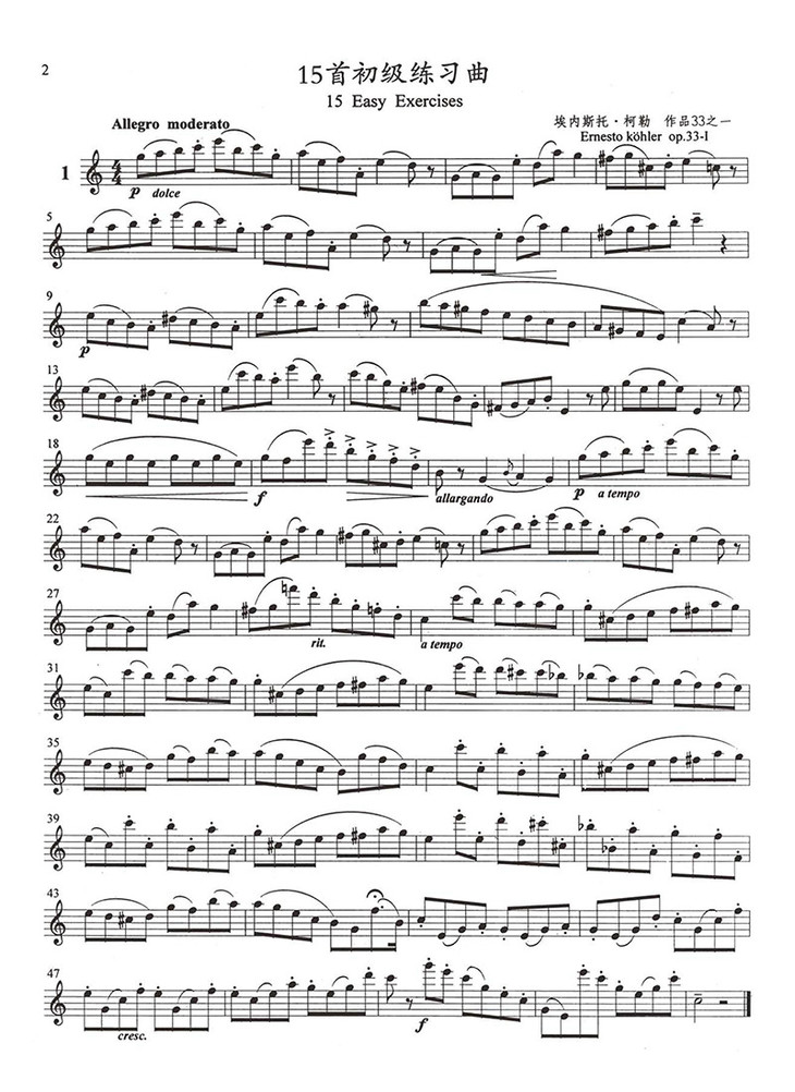 柯勒35首长笛练习曲 扫码听音乐 作品33 朴美香编著 15首初级练习曲 12首中级练习曲 8首gao级练习曲