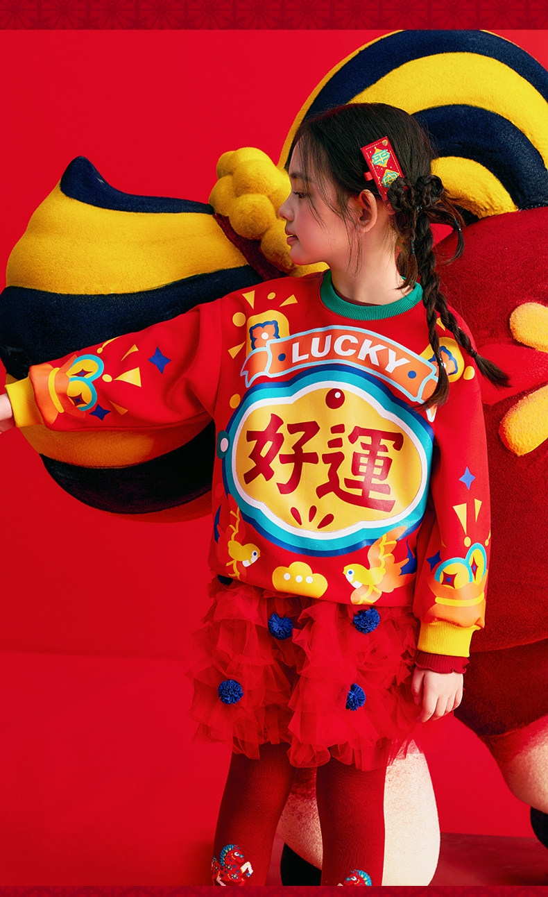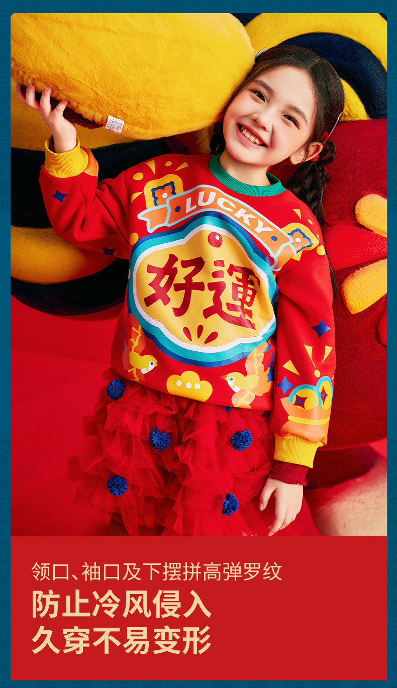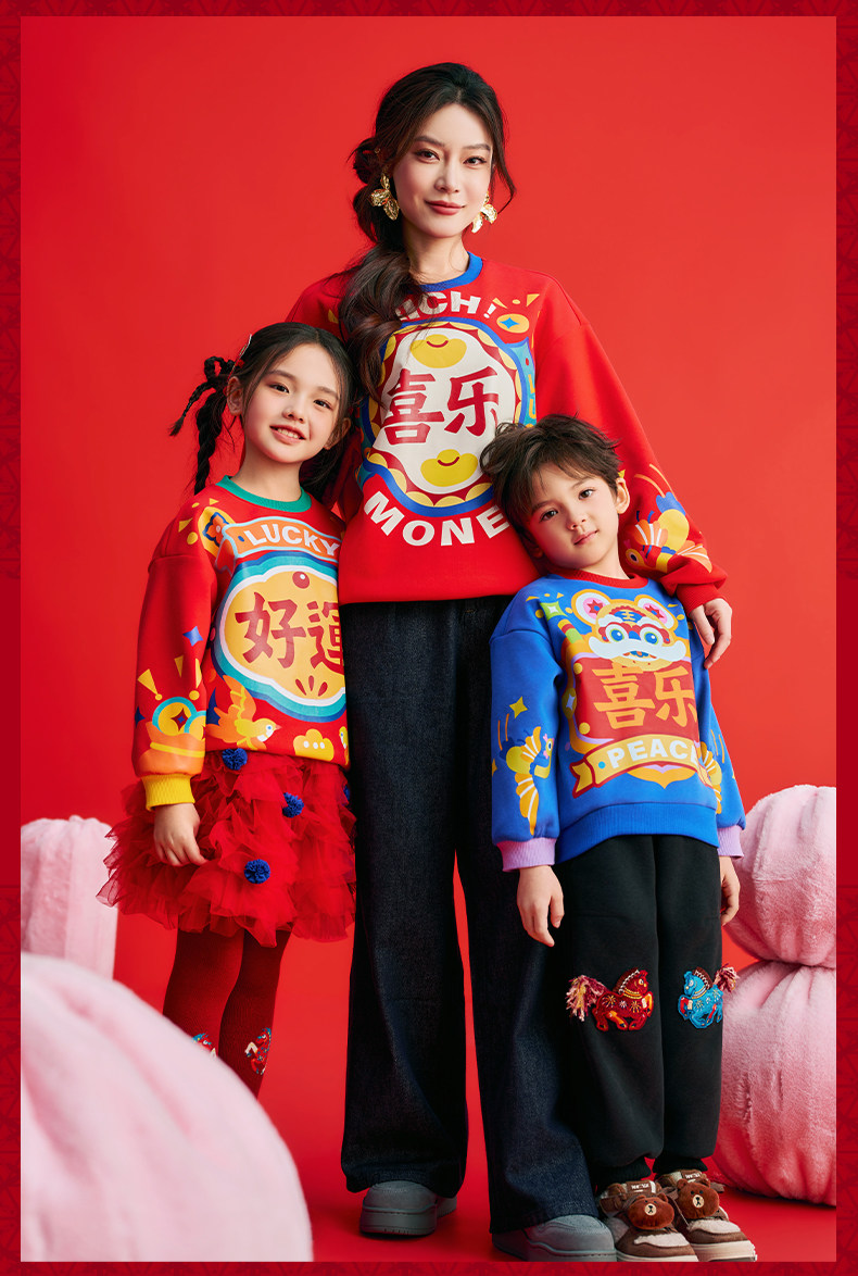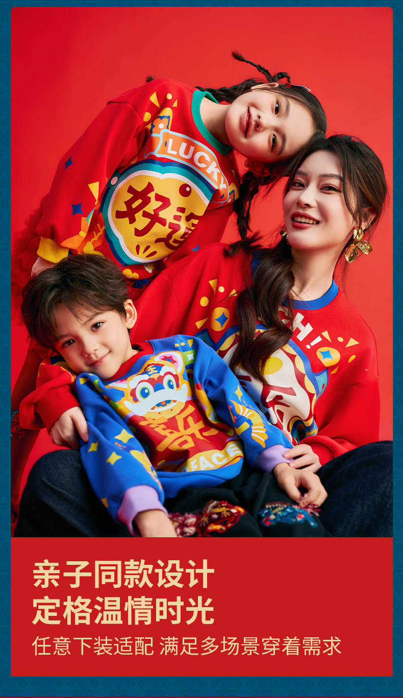 年衣童装亲子卫衣儿童冬季新款男女童加绒上衣心想事成毛衣
