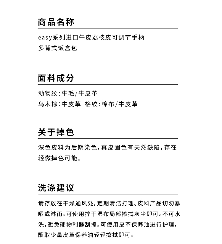 HIDEMI easy系列进口牛皮荔枝皮可调节手柄多背式饭盒包 格纹/乌木棕/动物纹