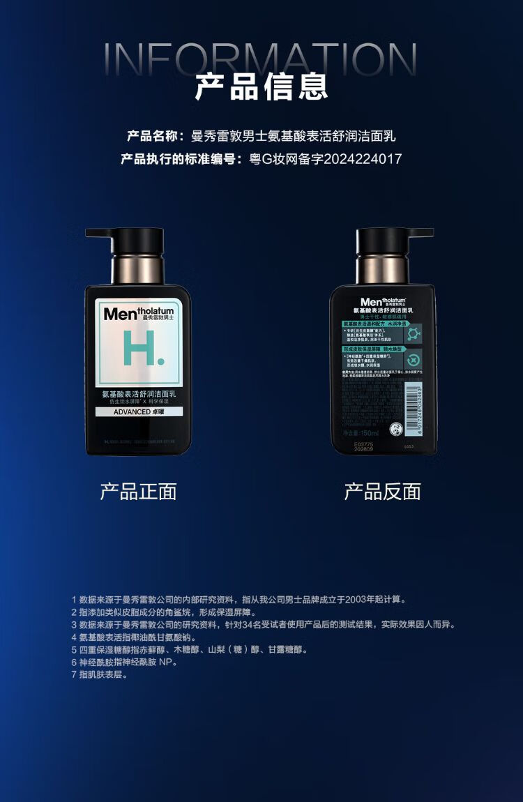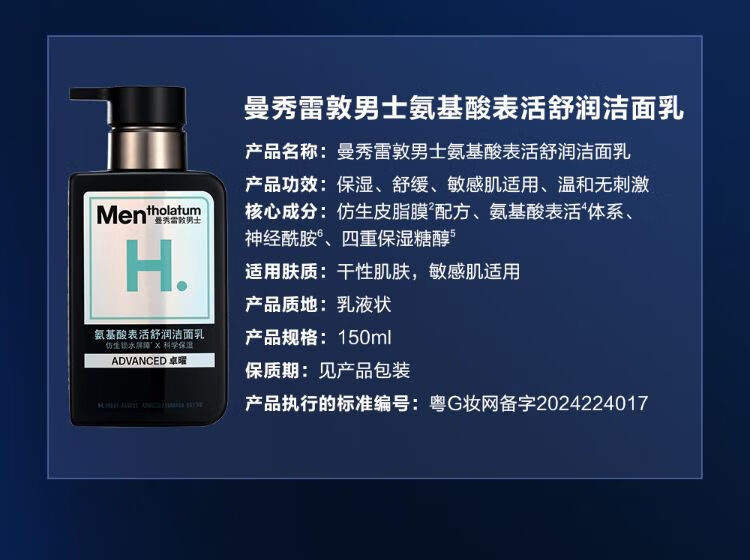 曼秀雷敦男士氨基酸表活舒润洁面乳 150ml