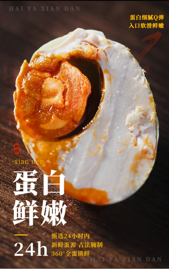我们只选用24小时内的鲜蛋入腌制池腌制,采用传统腌制工艺, 并按照科学的盐度比例和温度,腌制30天-45天, 最后通过130的高温烤制而成 使海鸭蛋具有香、油、松、嫩、沙、鲜的特点 咸香味正,风味正宗!