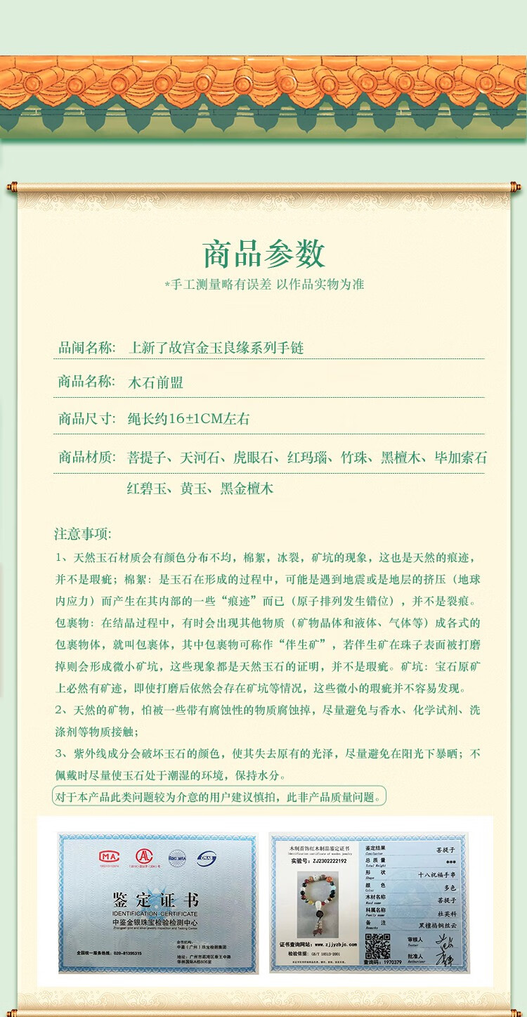 古风手链【象征平安 吉祥祝愿】御猫说 故宫手链手串念珠系列 水晶手链十八子手串佛珠 带流苏