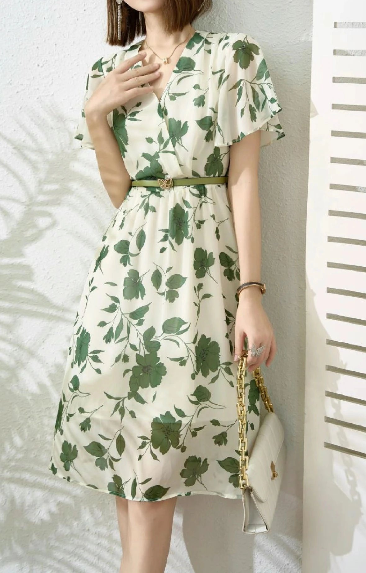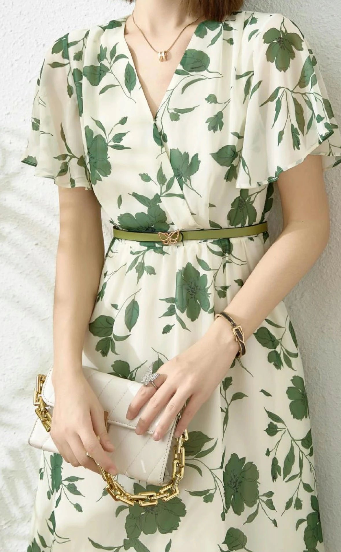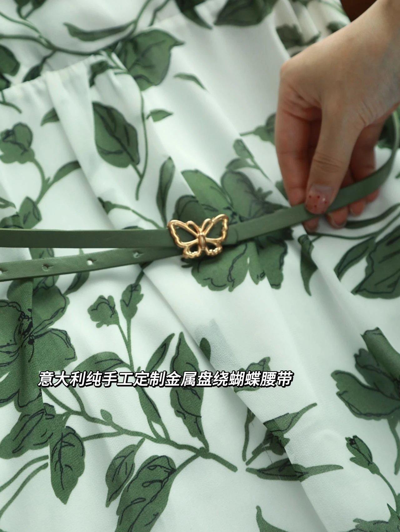 LPIUTY品牌直发⚠️贵妇团⚠️仲夏之夜⚠️Gucc*i同款稀缺面料⚠️手工金属蝴蝶腰带️!意大利纯手工定制⚠️法式优雅印花连衣裙⚠️意大利进口面料