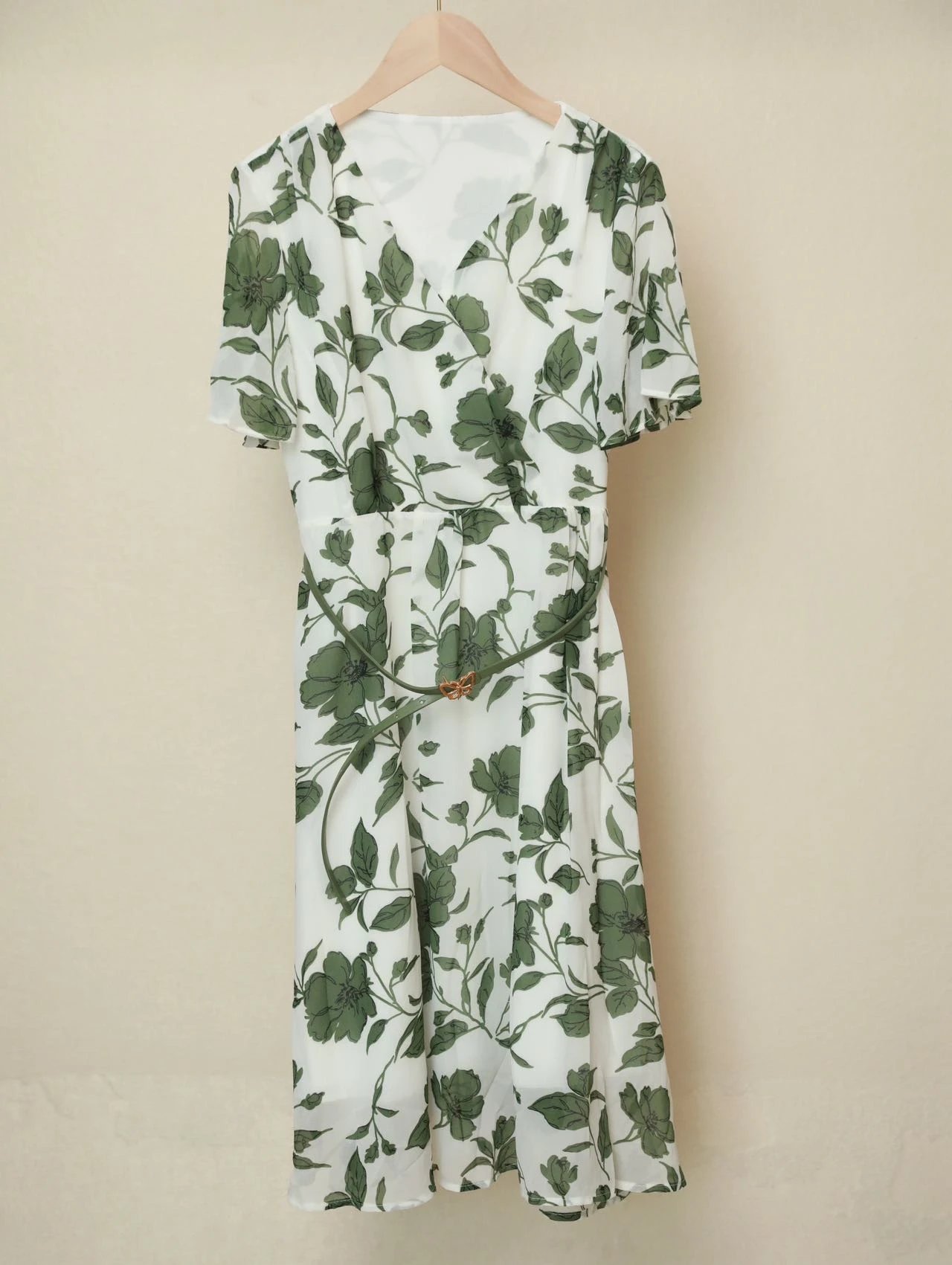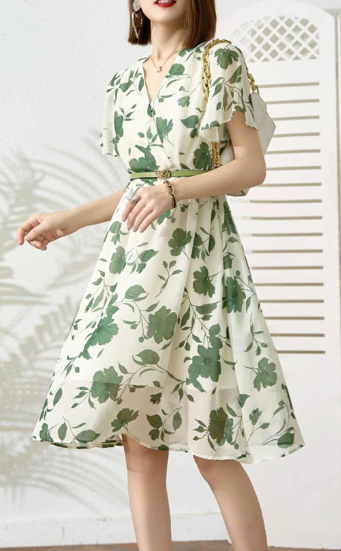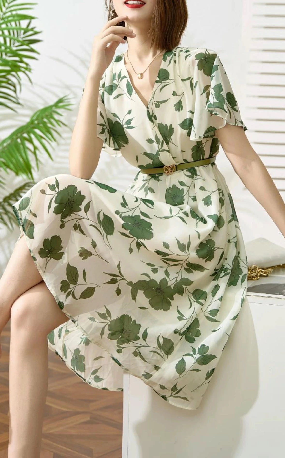LPIUTY品牌直发⚠️贵妇团⚠️仲夏之夜⚠️Gucc*i同款稀缺面料⚠️手工金属蝴蝶腰带️!意大利纯手工定制⚠️法式优雅印花连衣裙⚠️意大利进口面料