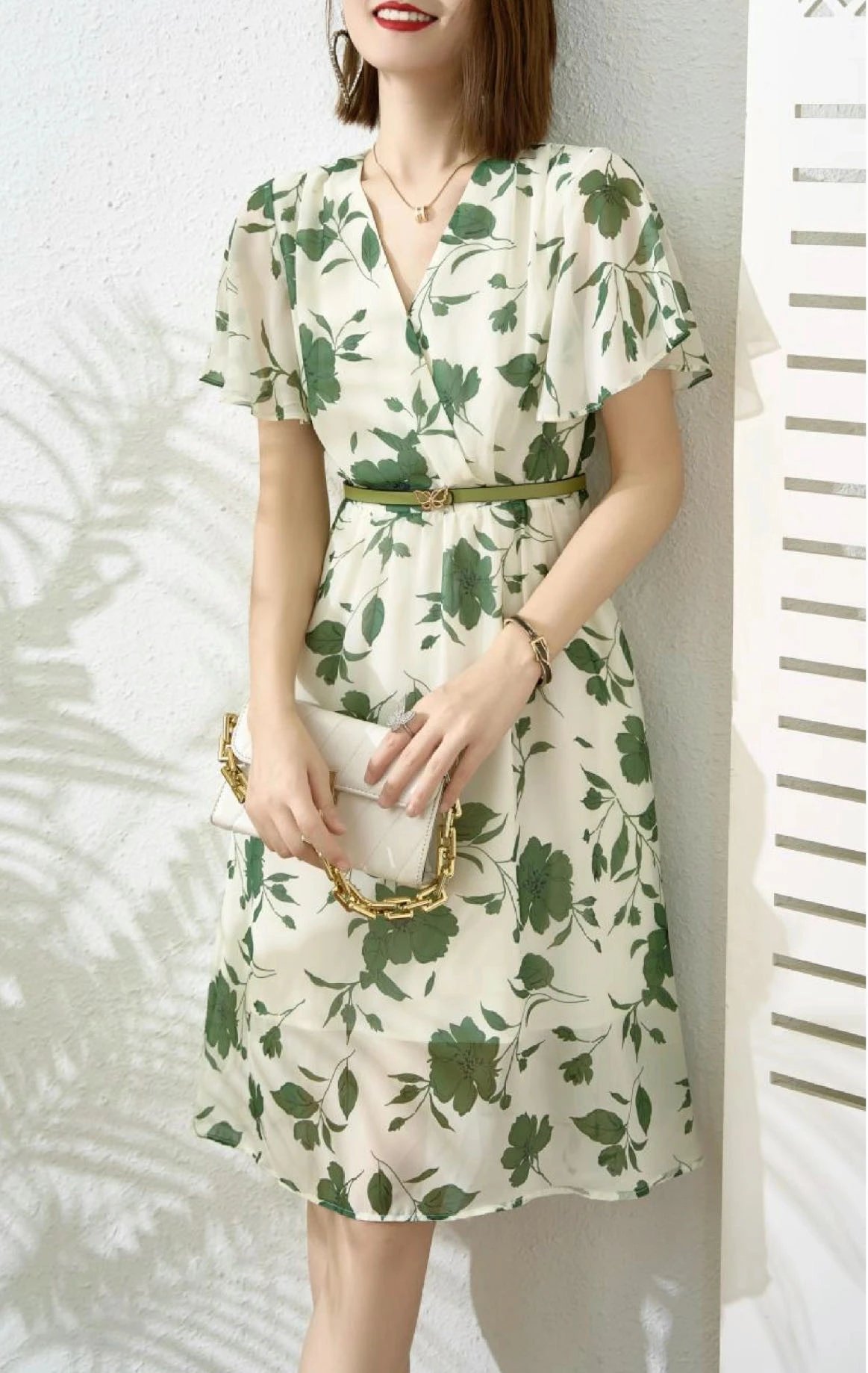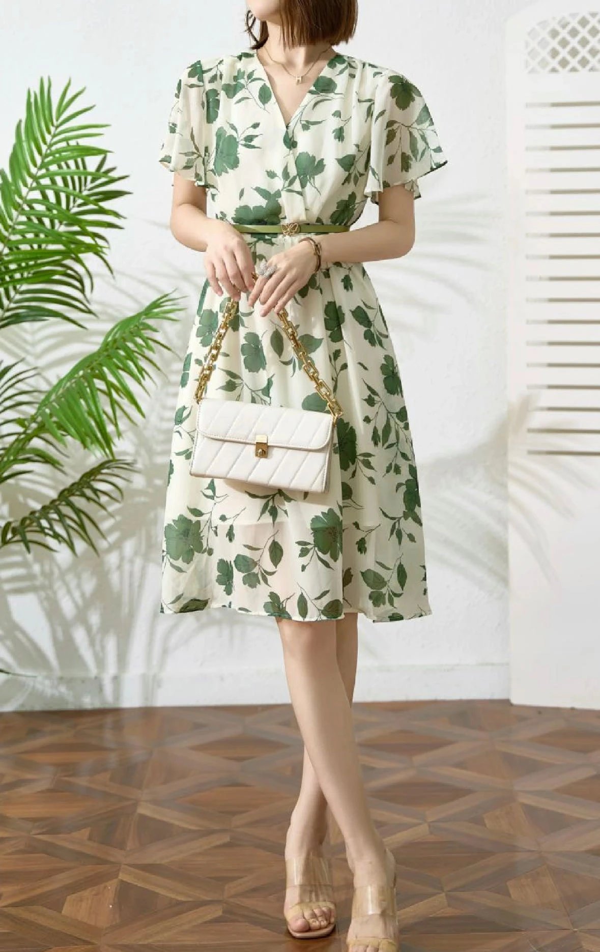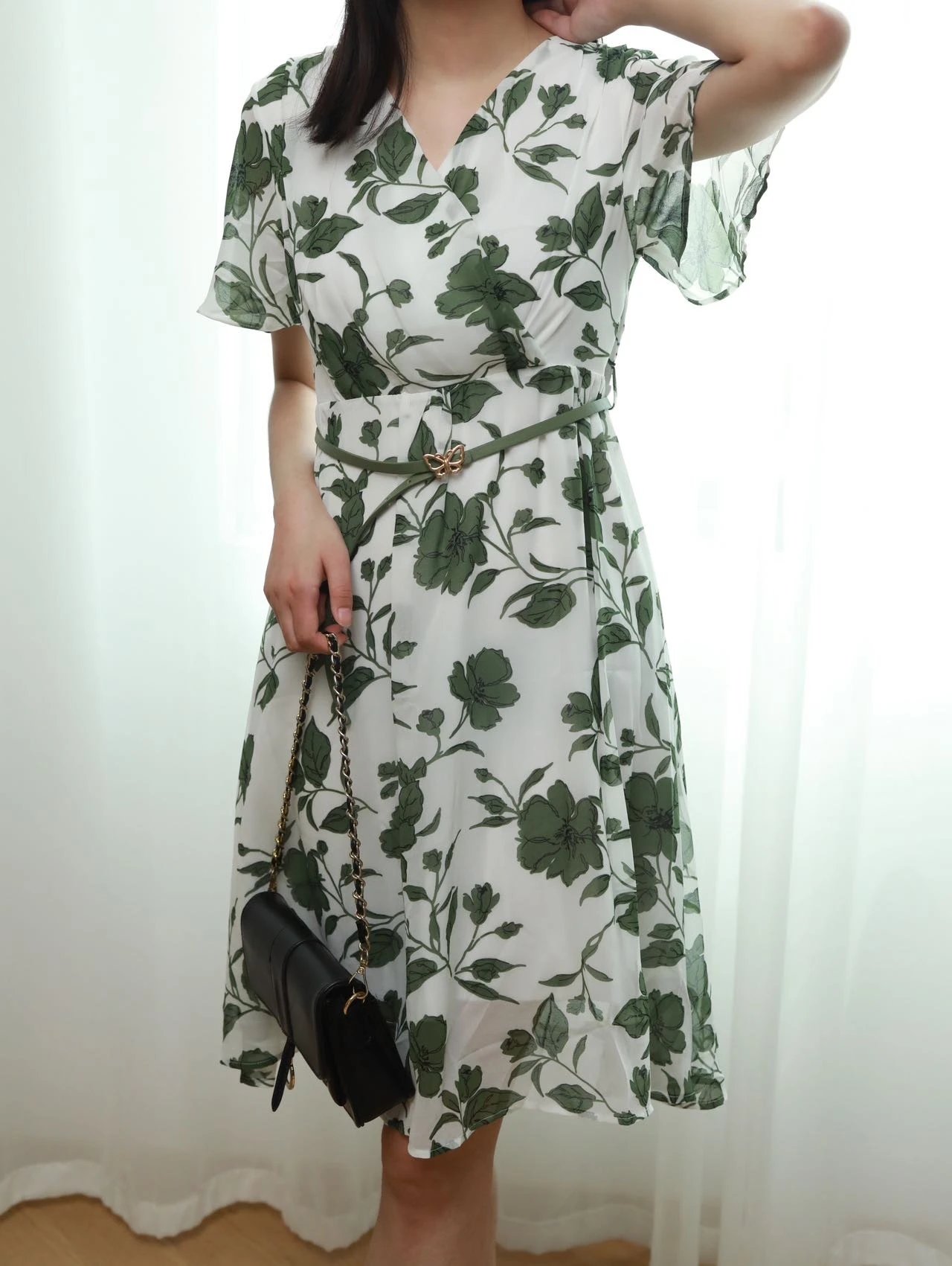 【商品品名】仲夏之夜法式优雅印花连衣裙