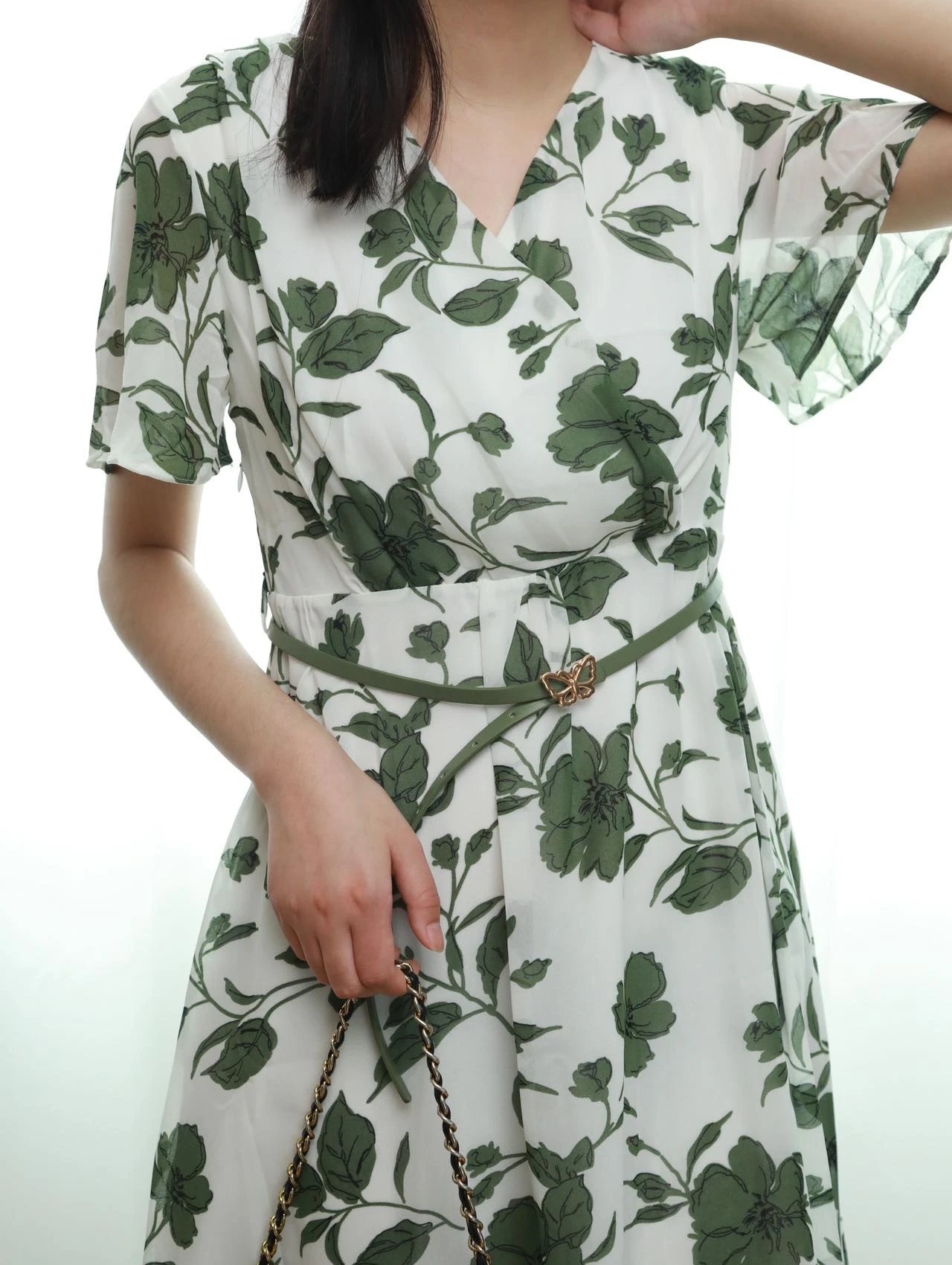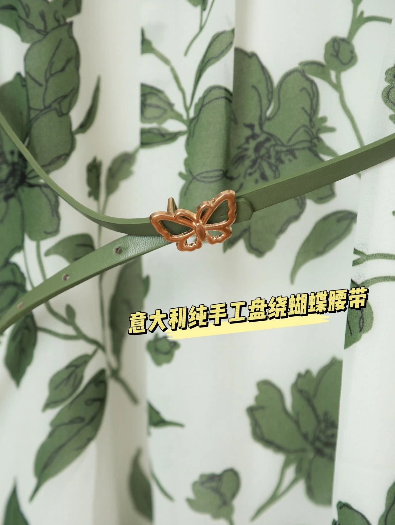 LPIUTY品牌直发⚠️贵妇团⚠️仲夏之夜⚠️Gucc*i同款稀缺面料⚠️手工金属蝴蝶腰带️!意大利纯手工定制⚠️法式优雅印花连衣裙 C148160