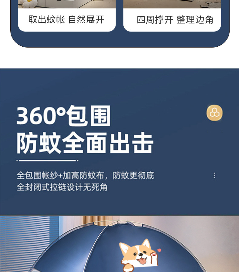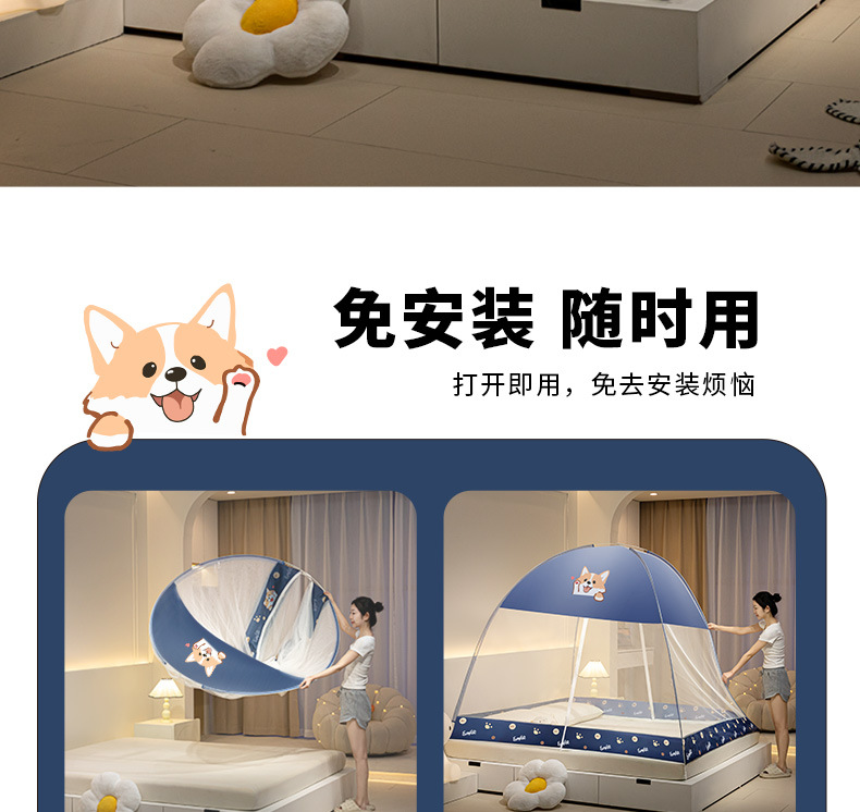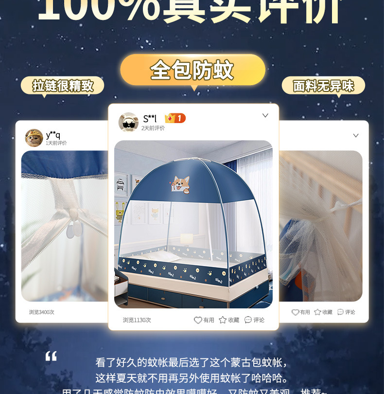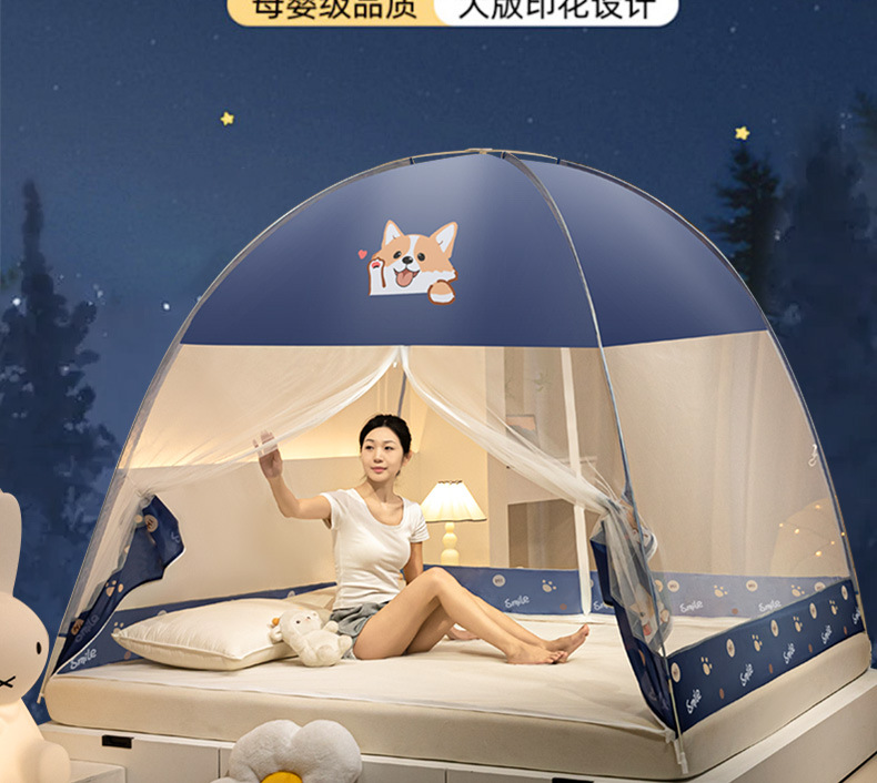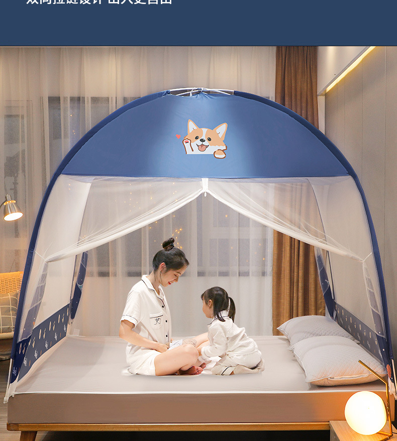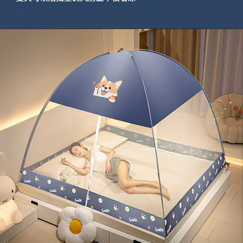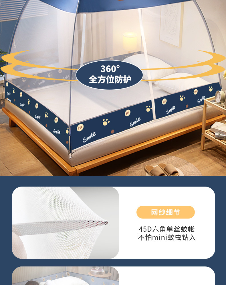 【睡拥大空间❗️升级蒙古包蚊帐】全包围帐纱+加高防蚊布,防更彻底全封闭式拉链设计物死角,家用卧室1米5床上帐篷支架可折叠文帐防摔防蚊帳L