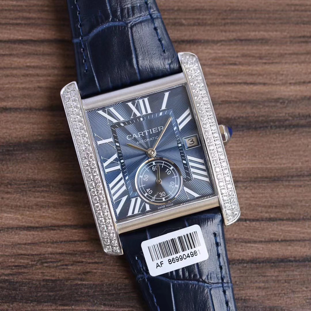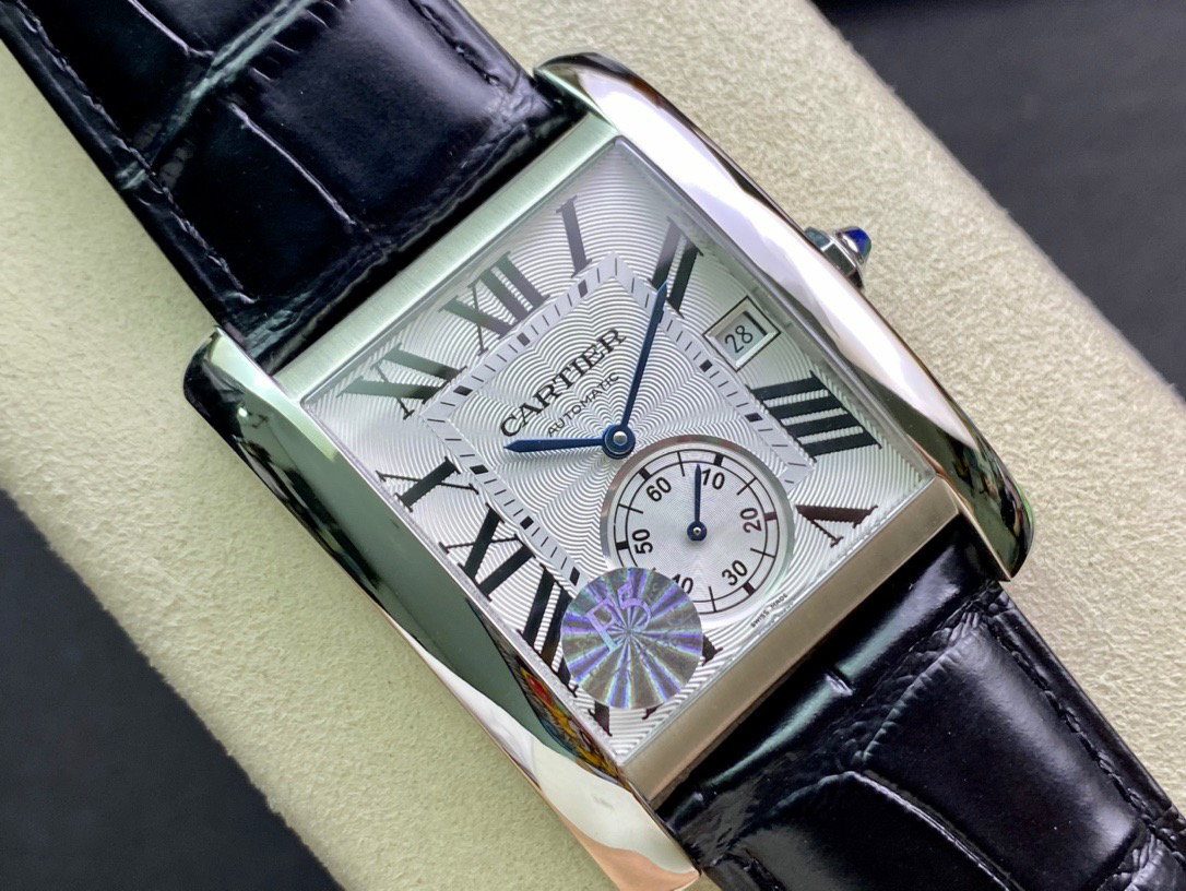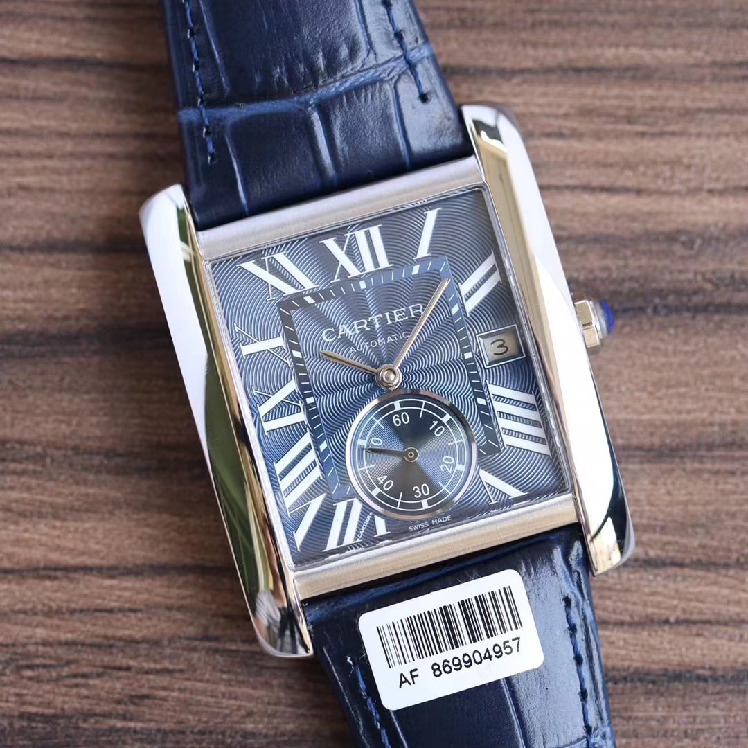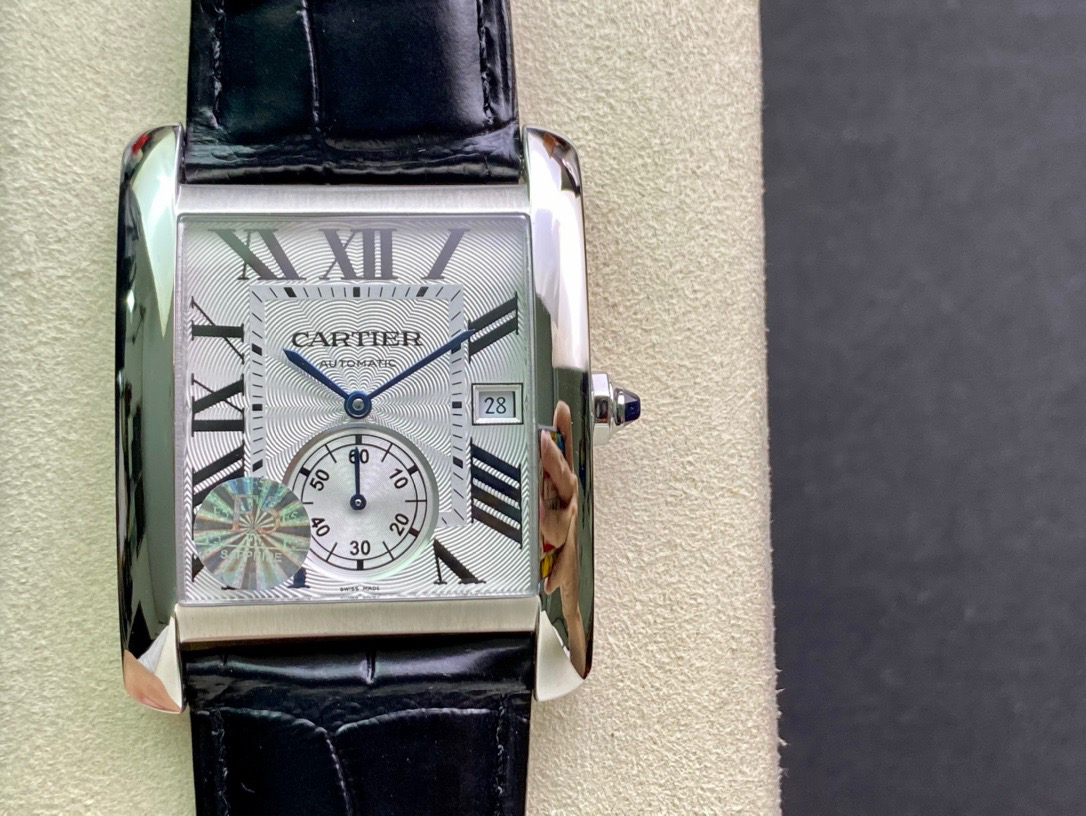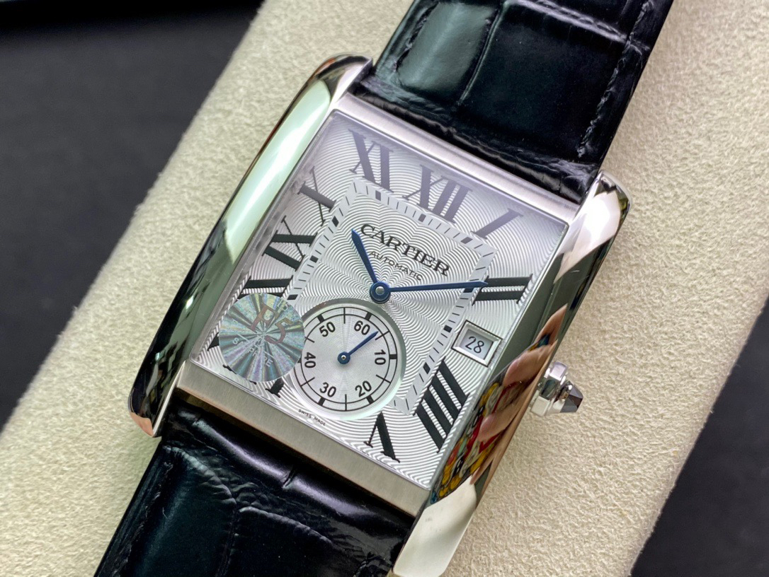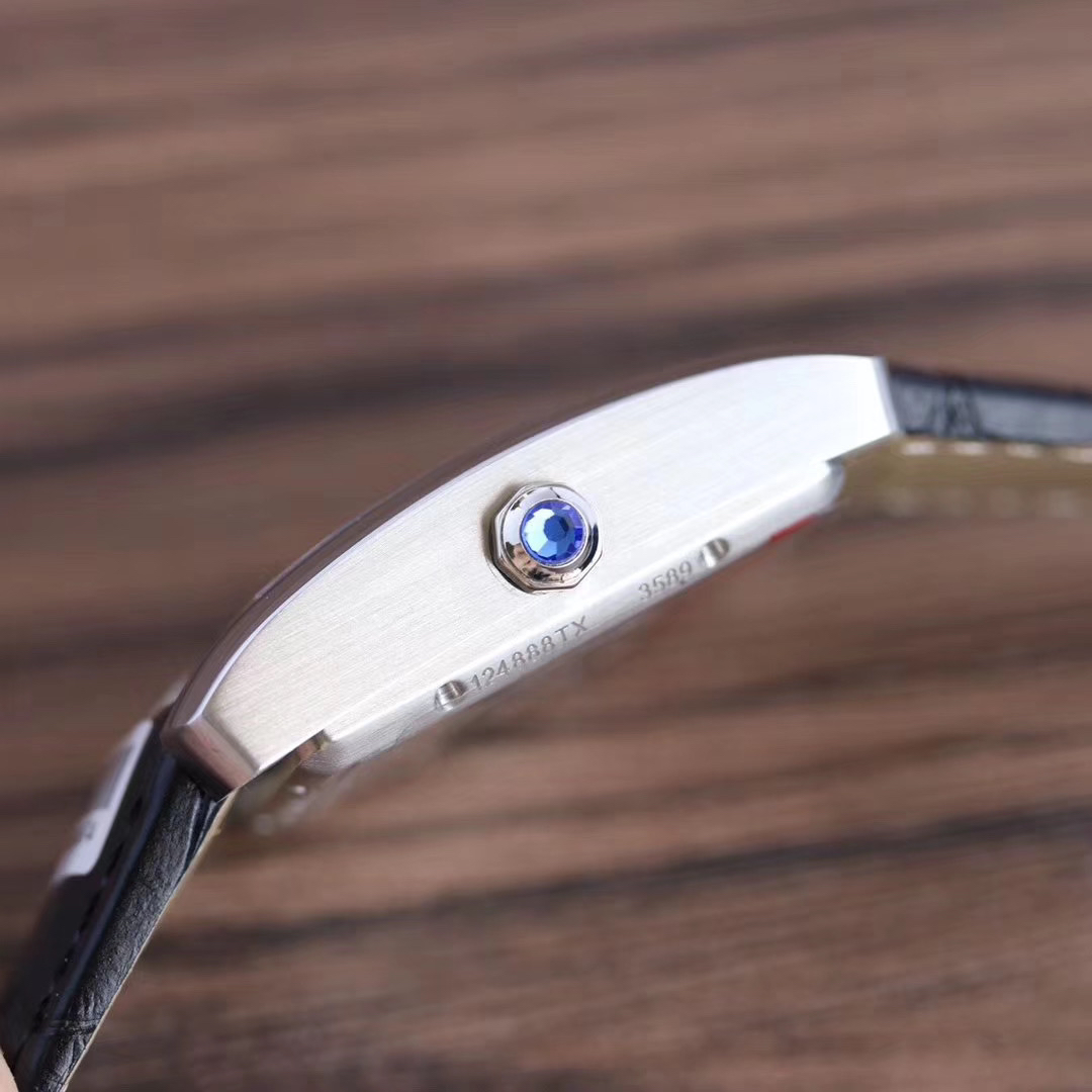 JF卡地亚W5330003英式坦克系列 版本,原版1904MC自动机械机芯,表径:34mmX44mm,使用原版烤钢蓝表针,使表针色泽均匀