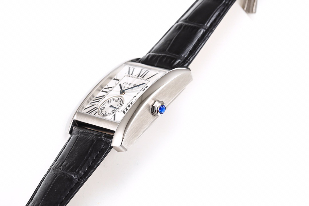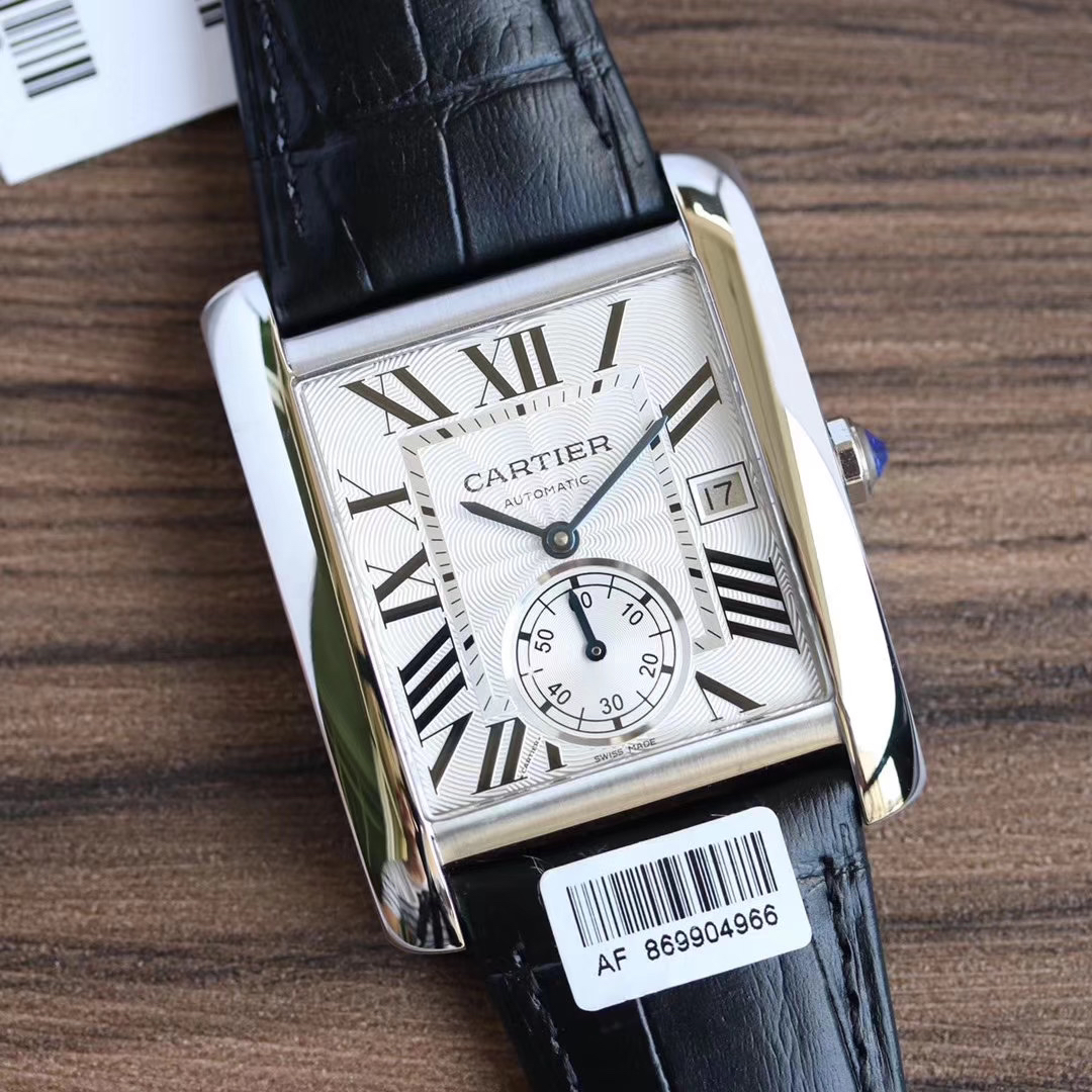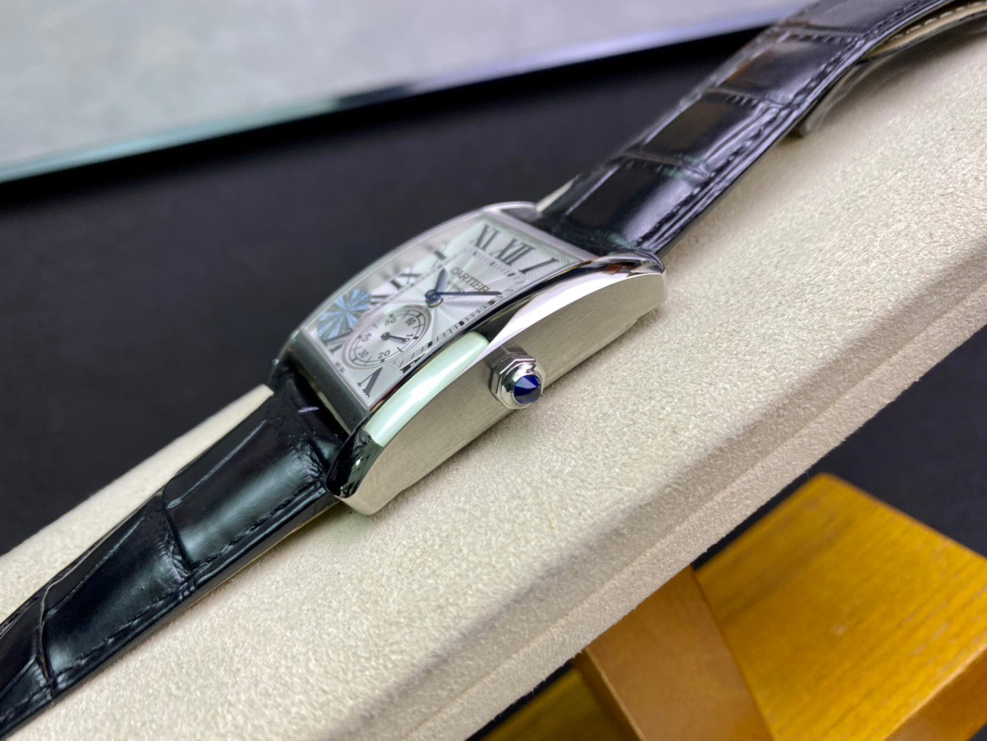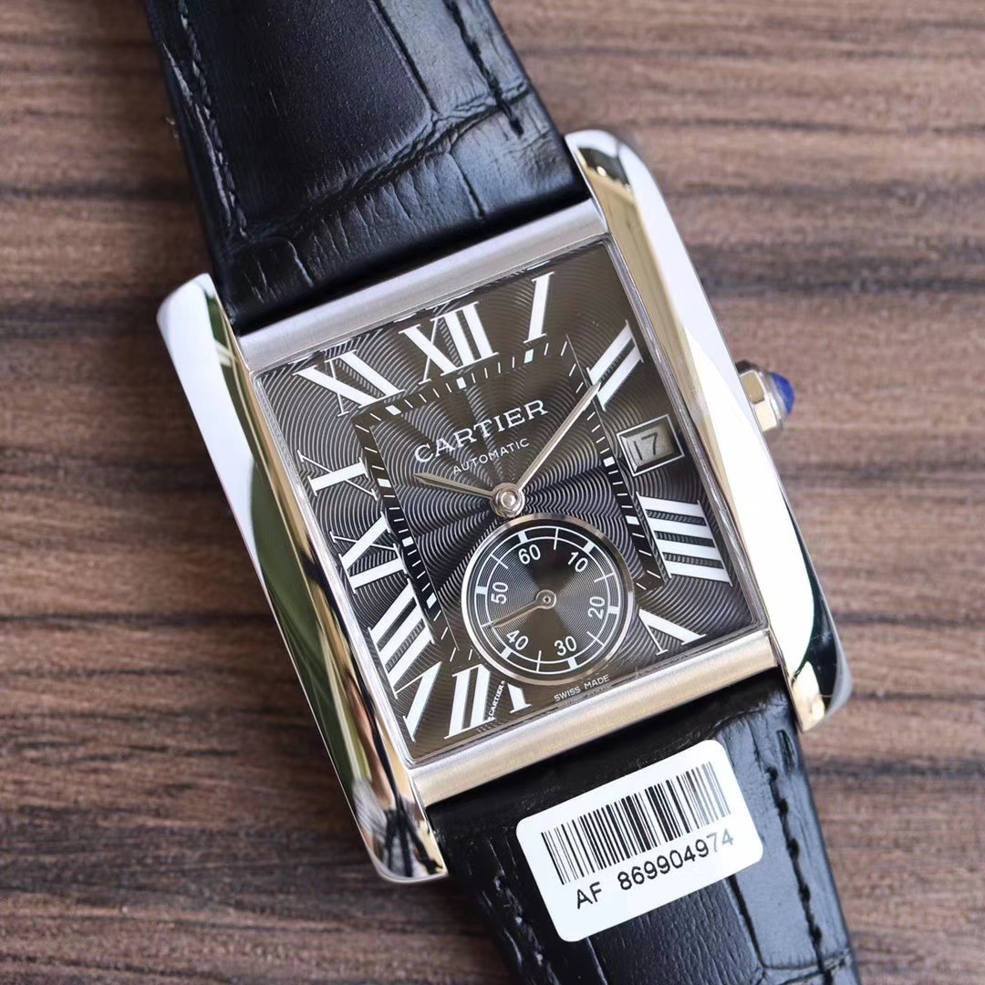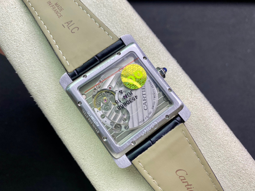 JF卡地亚W5330003英式坦克系列 版本,原版1904MC自动机械机芯,表径:34mmX44mm,使用原版烤钢蓝表针,使表针色泽均匀