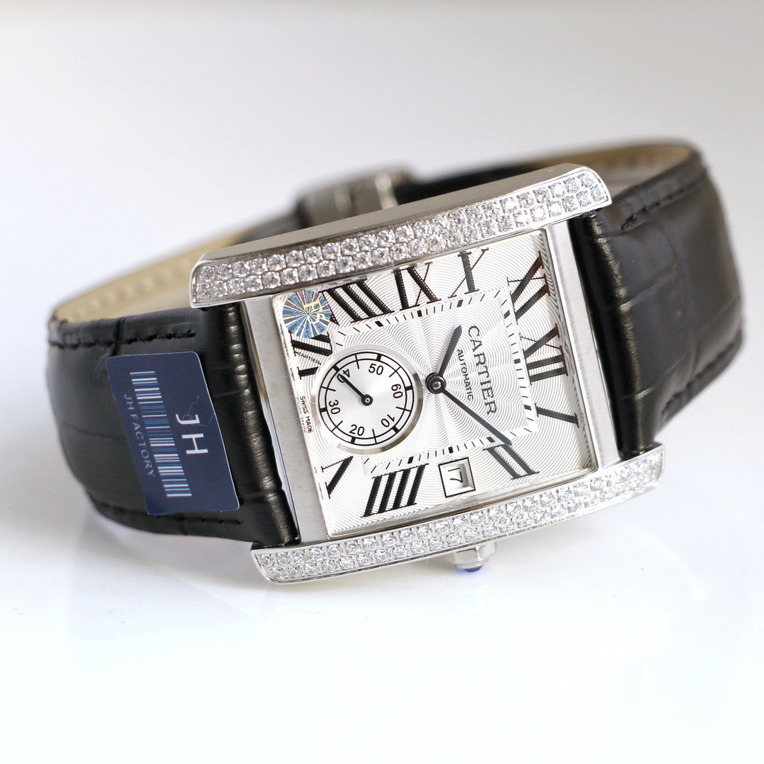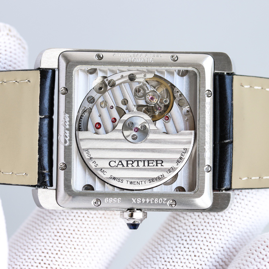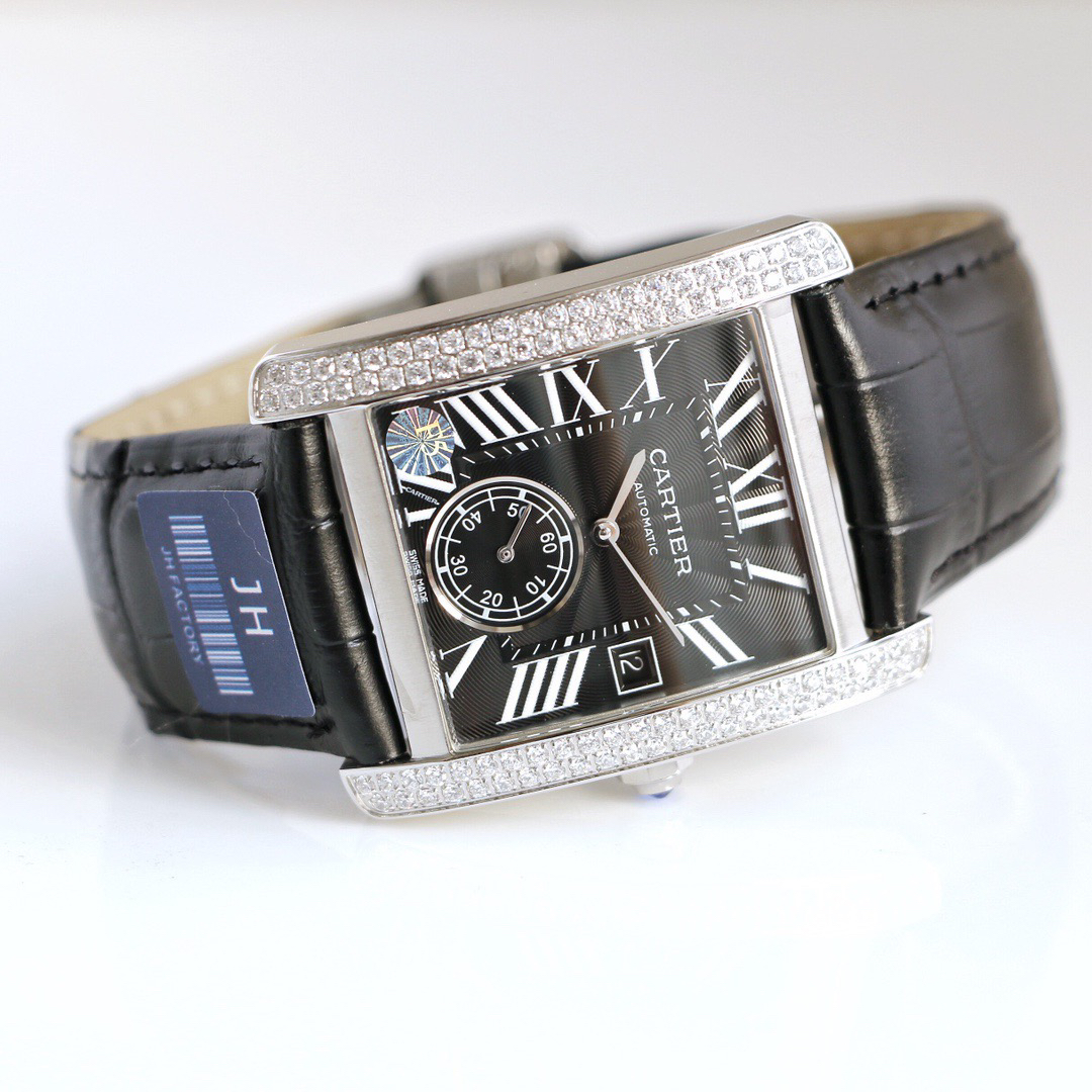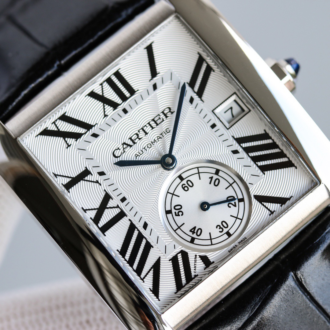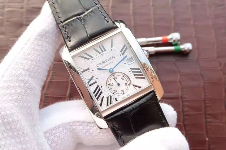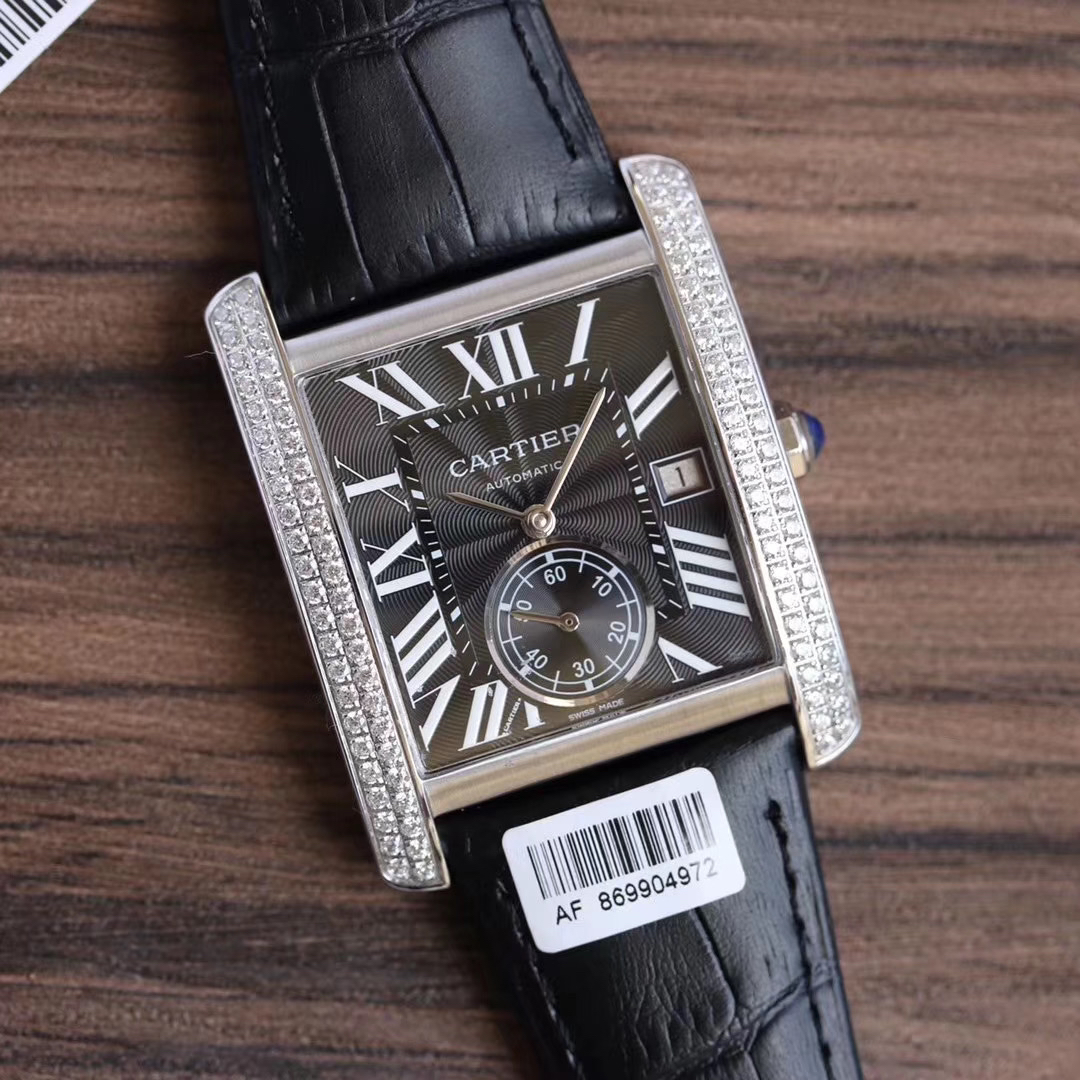 JF卡地亚W5330003英式坦克系列 版本,原版1904MC自动机械机芯,表径:34mmX44mm,使用原版烤钢蓝表针,使表针色泽均匀
