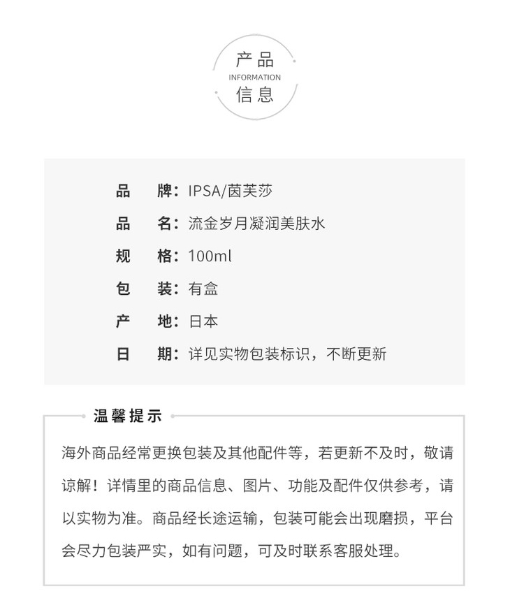 IPSA/茵芙莎 流金水保湿控油舒缓爽肤水维稳补水无酒精 100ml/30ml大中样