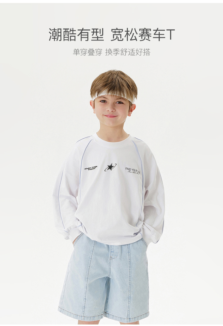 马克珍妮男童潮酷赛车运动T恤 儿童纯棉上衣2025年春装新款250079