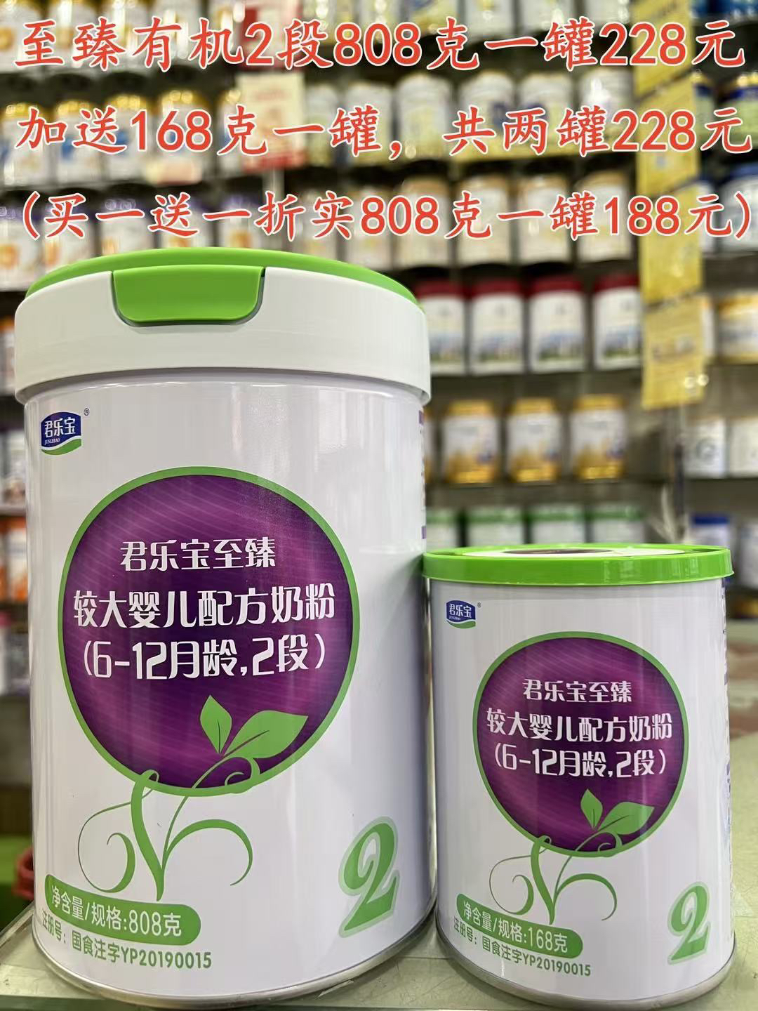 【君乐宝至臻有机808克】首购一罐228元,活动“买一送一”,加送168克一罐,共两罐228元. (折实808克一罐才188元)