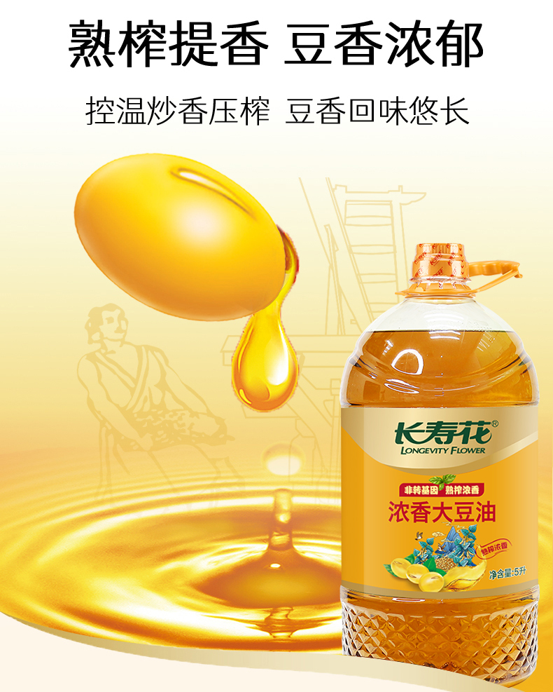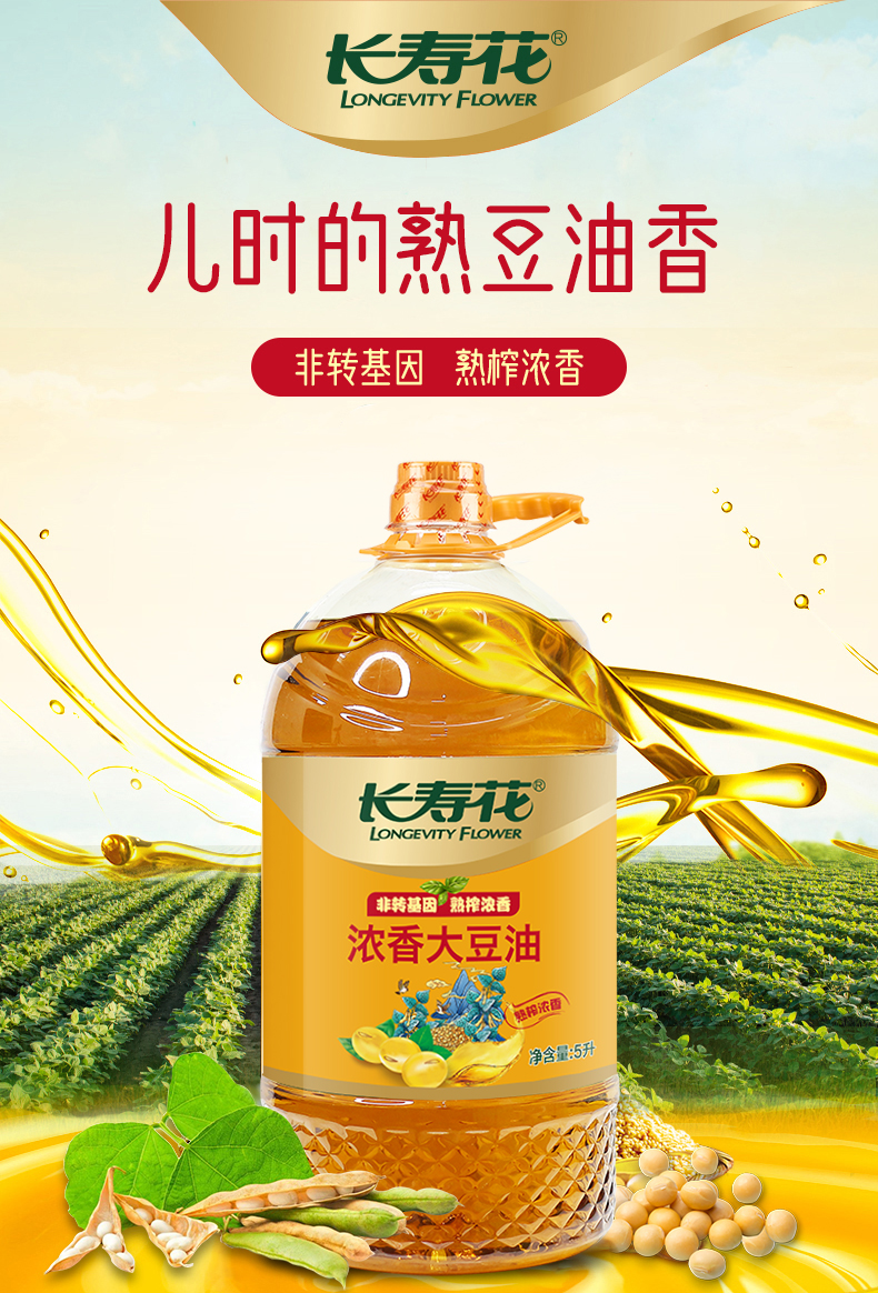 长寿花低温初榨原香大豆油5升非转基因 压榨三级大豆油5L
