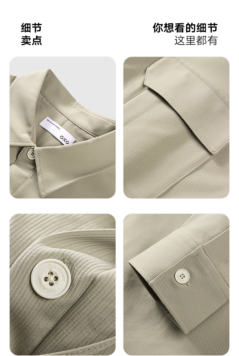GXG男装 卡其色基础款衬衫通勤简约上装男宽松衬衣 2025春季热卖