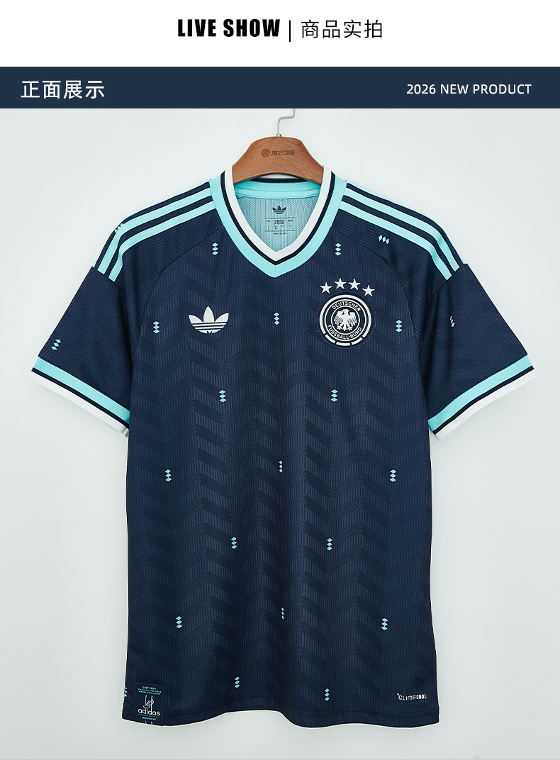 SFS阿迪达斯2026世界杯德国客场球迷版球衣短袖足球服男 JN2074