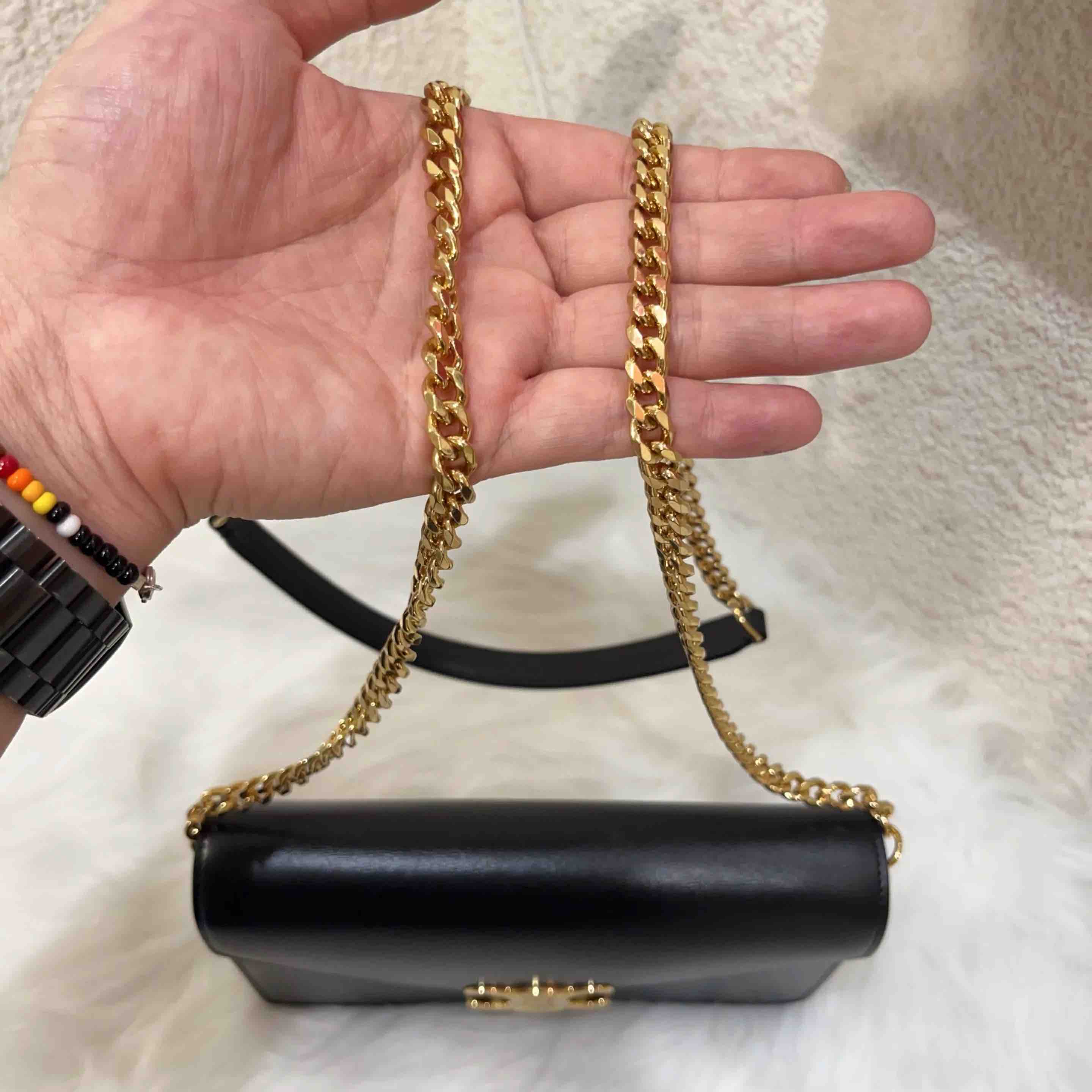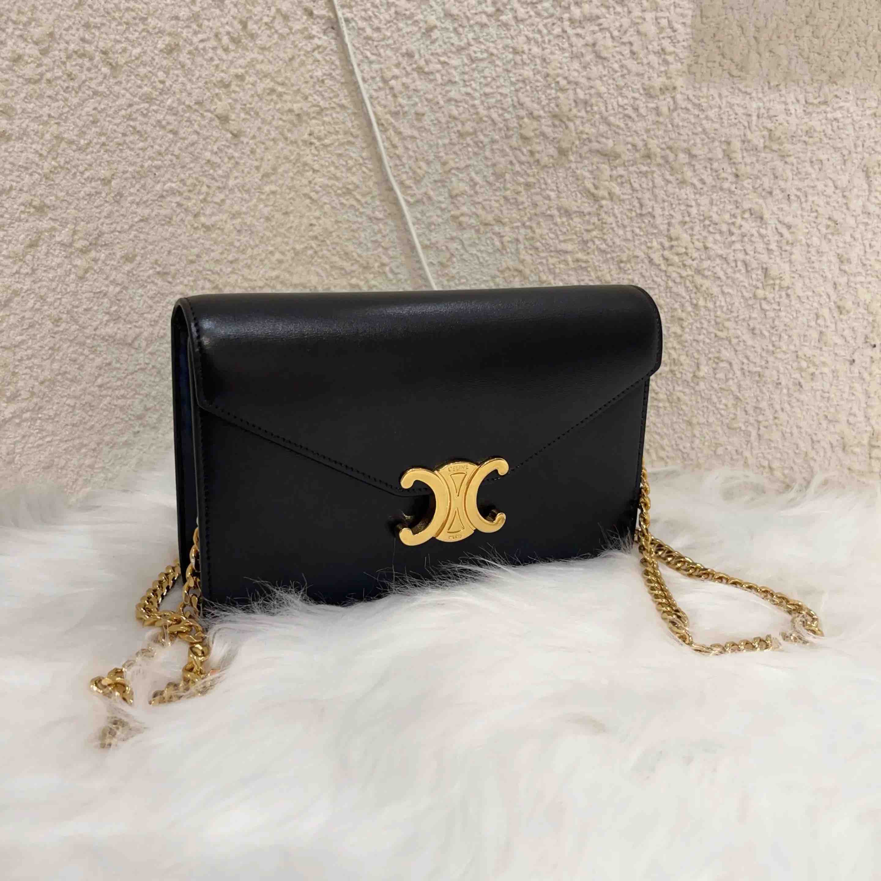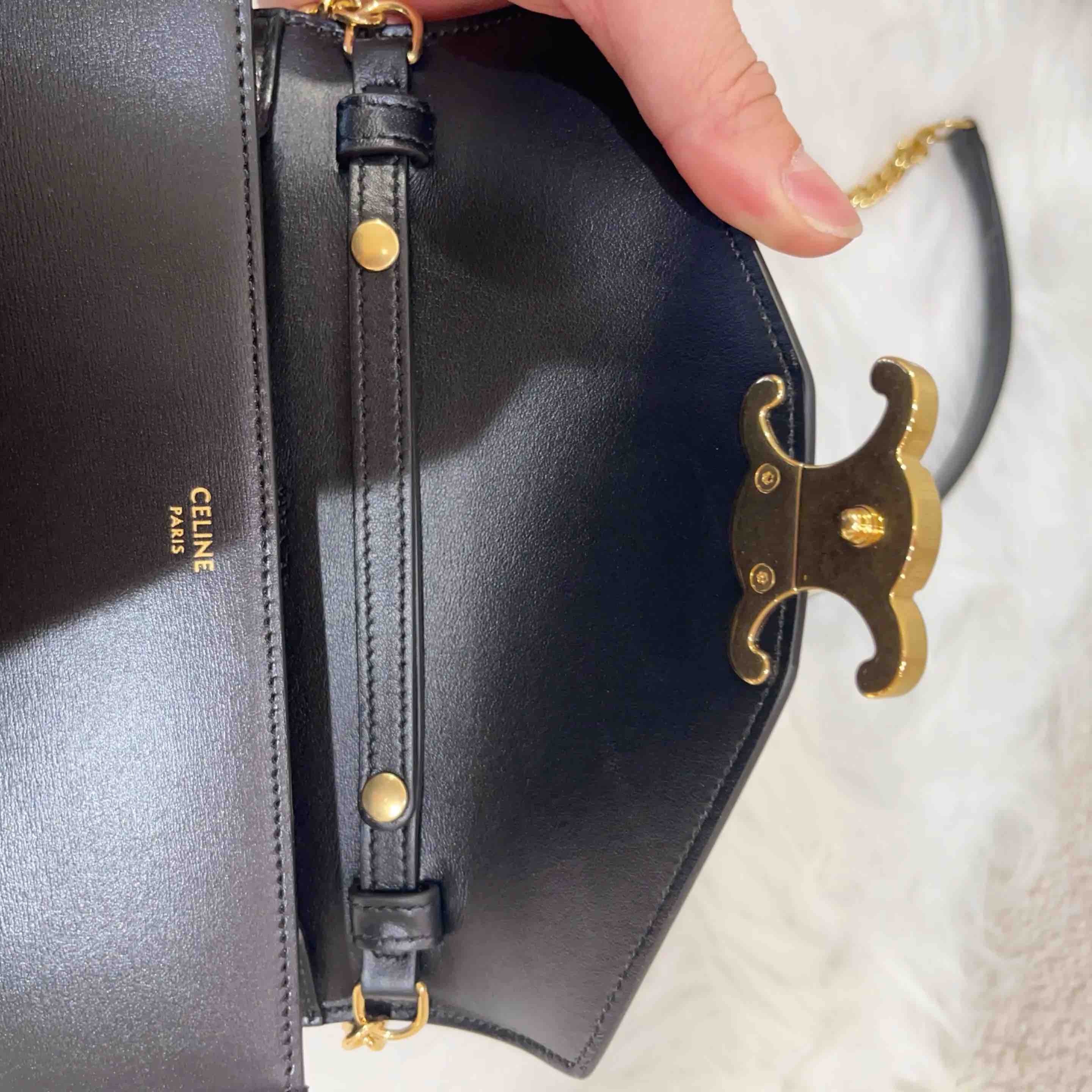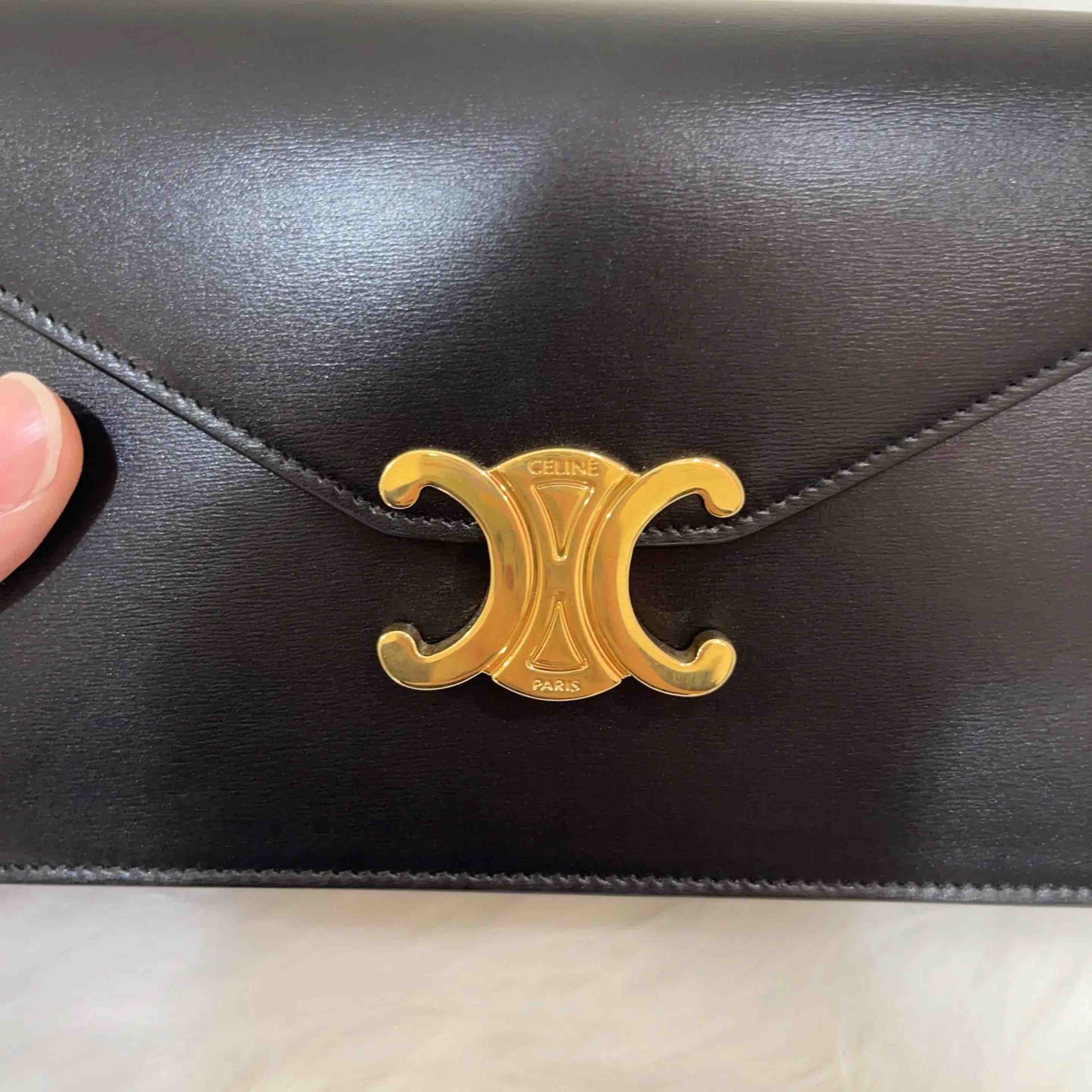 【商品详情】正品二手 Celine MARGO 黑金 box牛皮 斜挎包🎃98新 19*13。配件:肩带 防尘袋。百搭不挑衣。