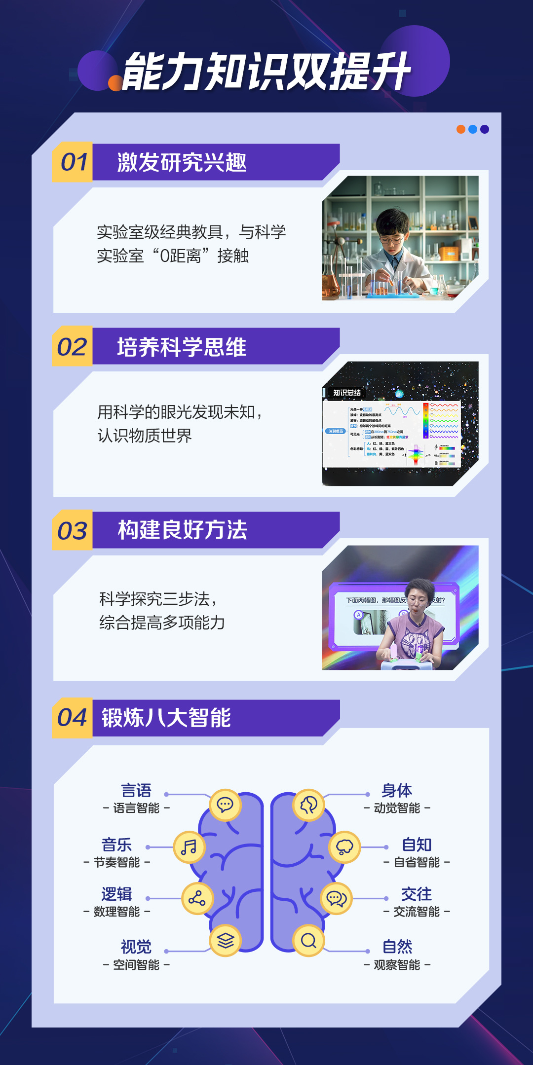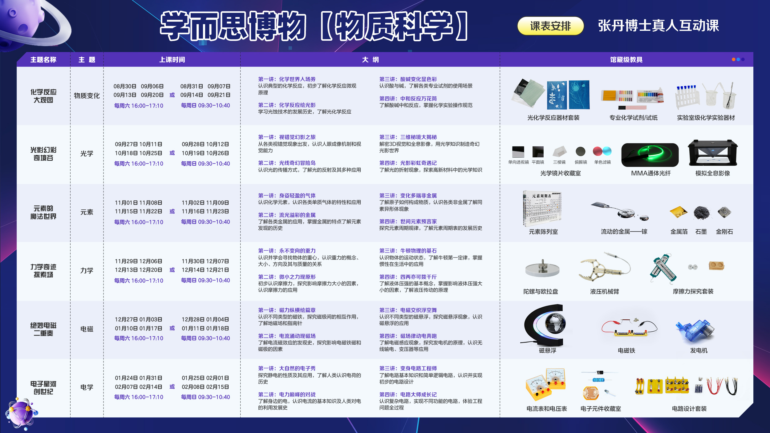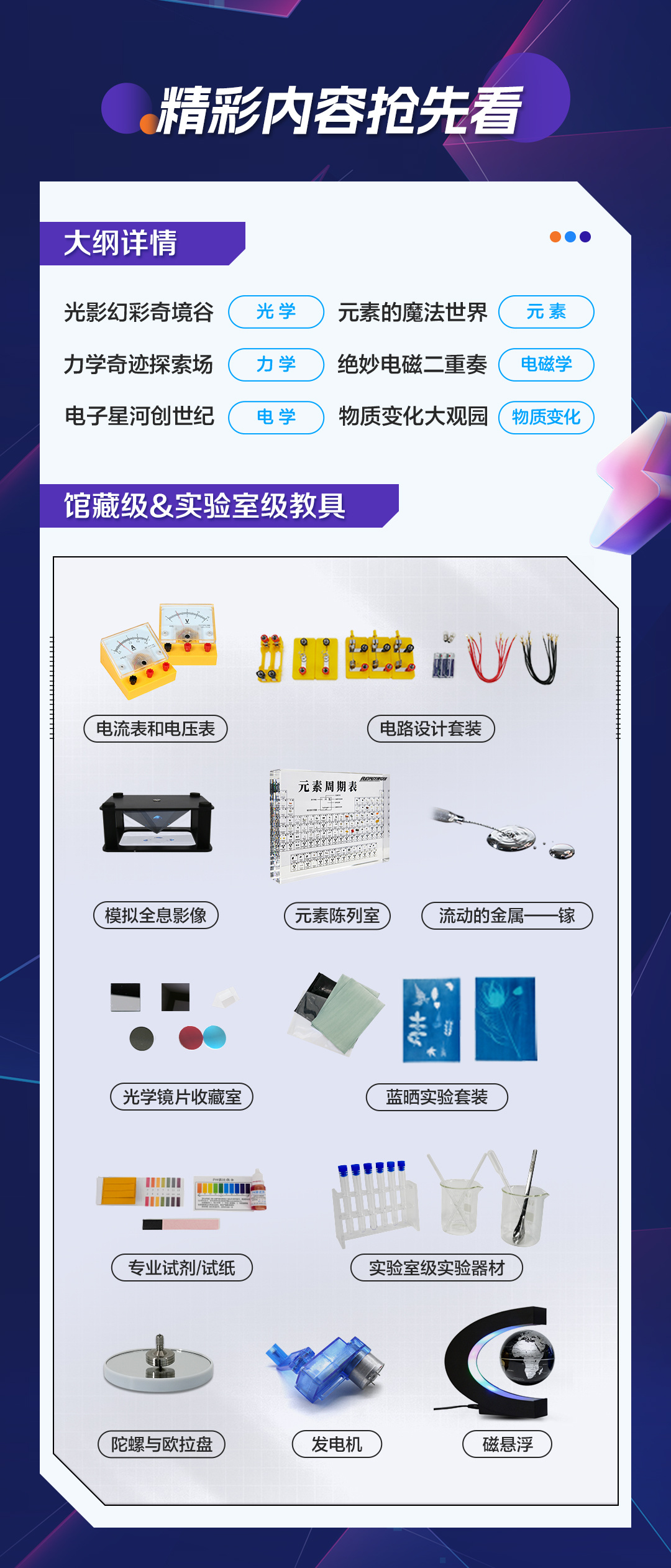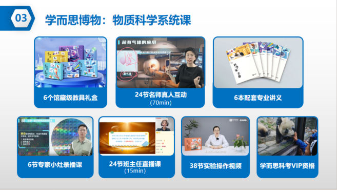 六大主题24节真人互动课+38次动手实验+39个馆藏级教具+200个知识点+365天伴学服务