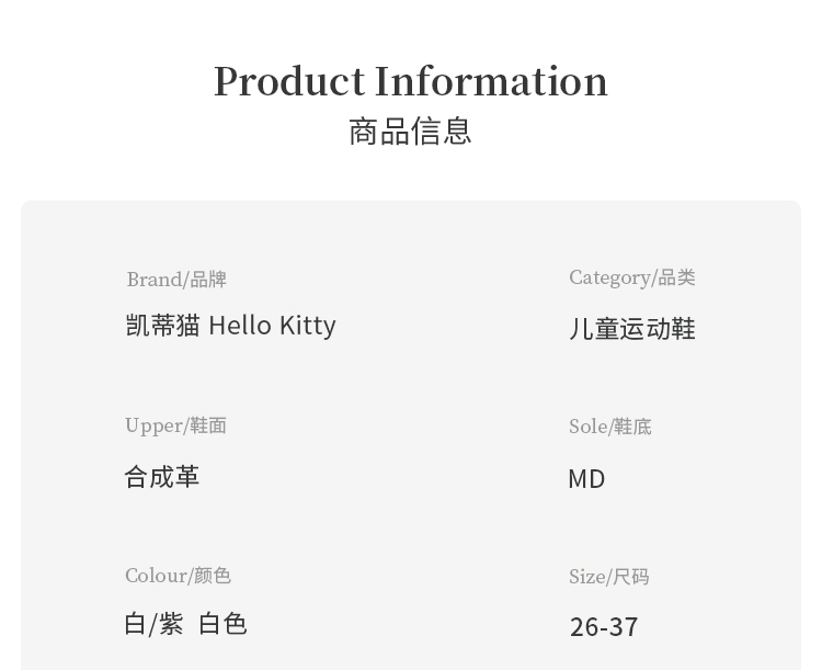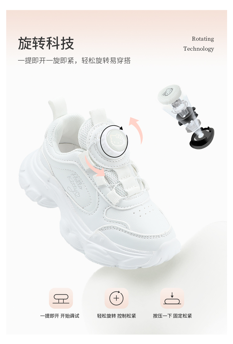 hellokitty童鞋女童运动鞋春秋儿童小白鞋女孩白色休闲鞋26-37 K4536860
