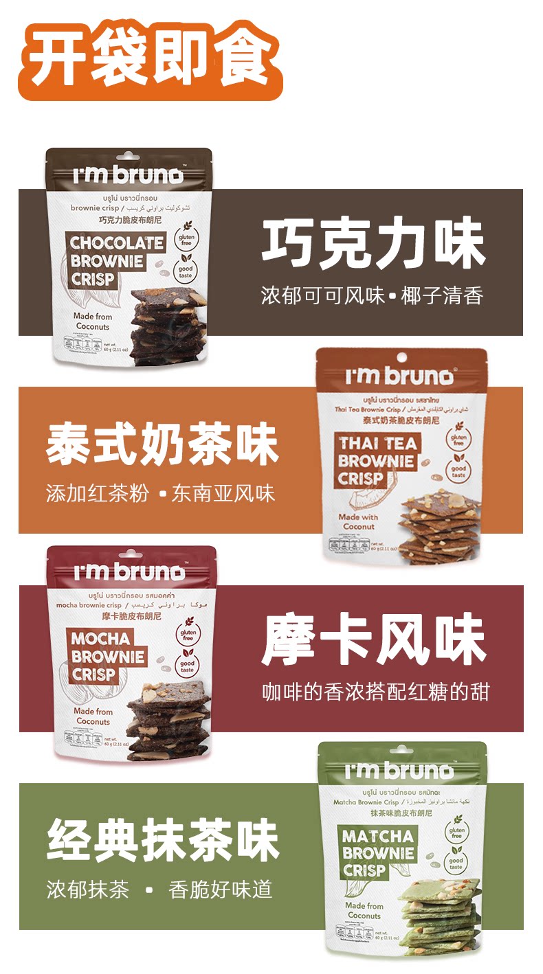 bruno布朗尼脆片60g(泰式奶茶/巧克力/摩卡/抹茶味)