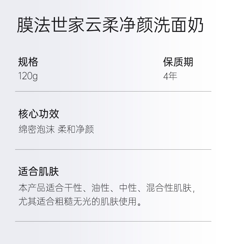 【清洁修护】膜法世家云柔净颜洗面奶120g